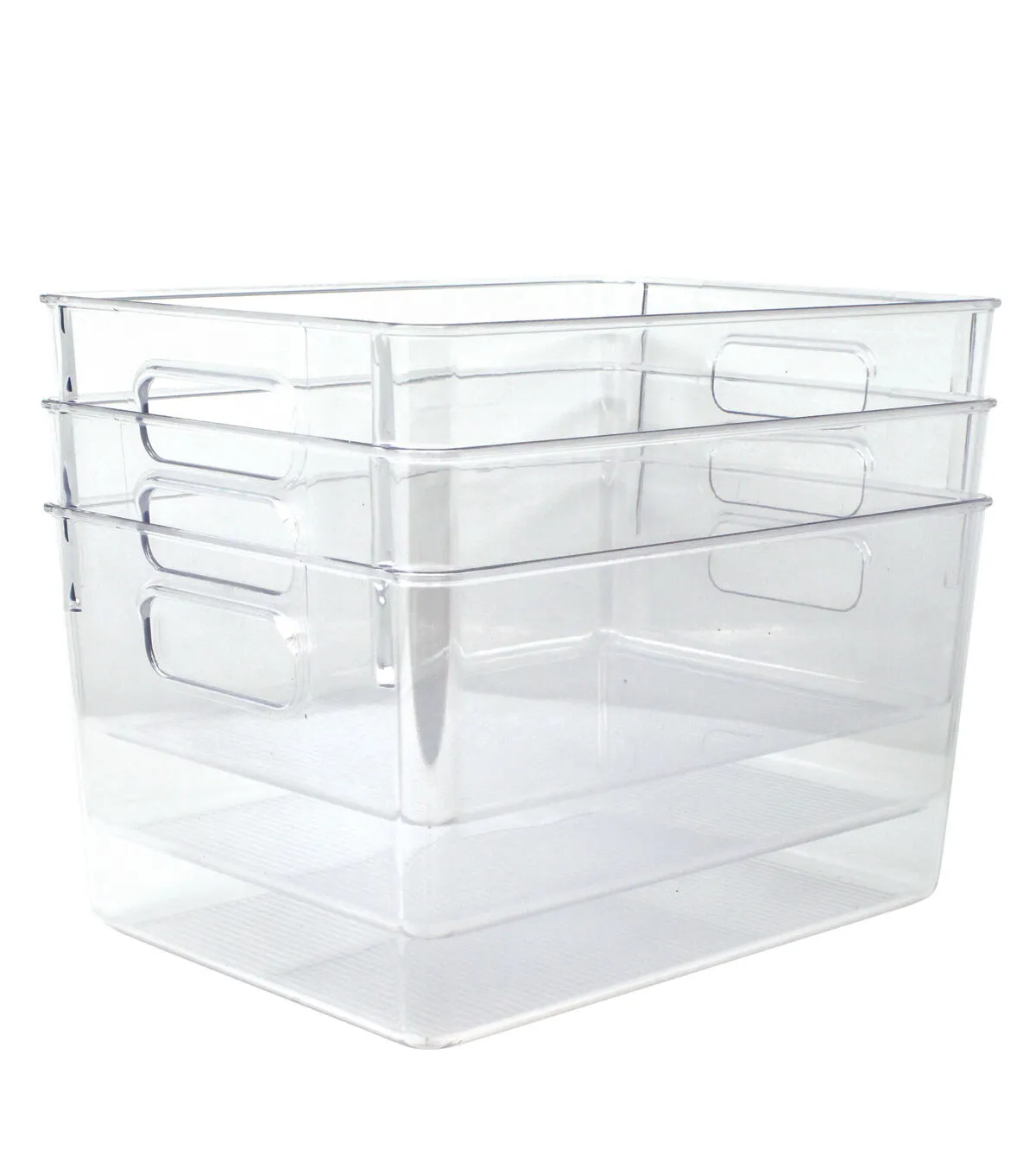 11" Clear Plastic Storage Bins 3pk by Top Notch