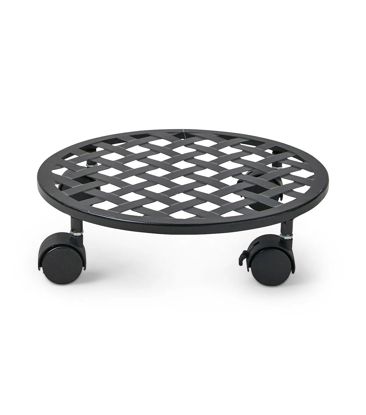 12" Spring Black Iron Rolling Plant Stand by Place & Time