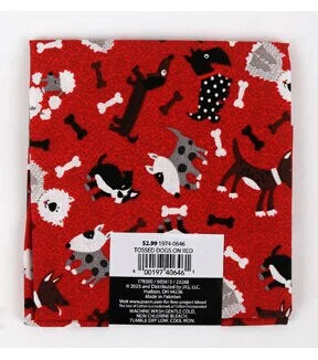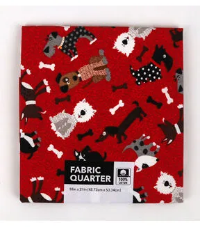 18" x 20" Dogs on Red Novelty Cotton Fabric Quarter 1pc