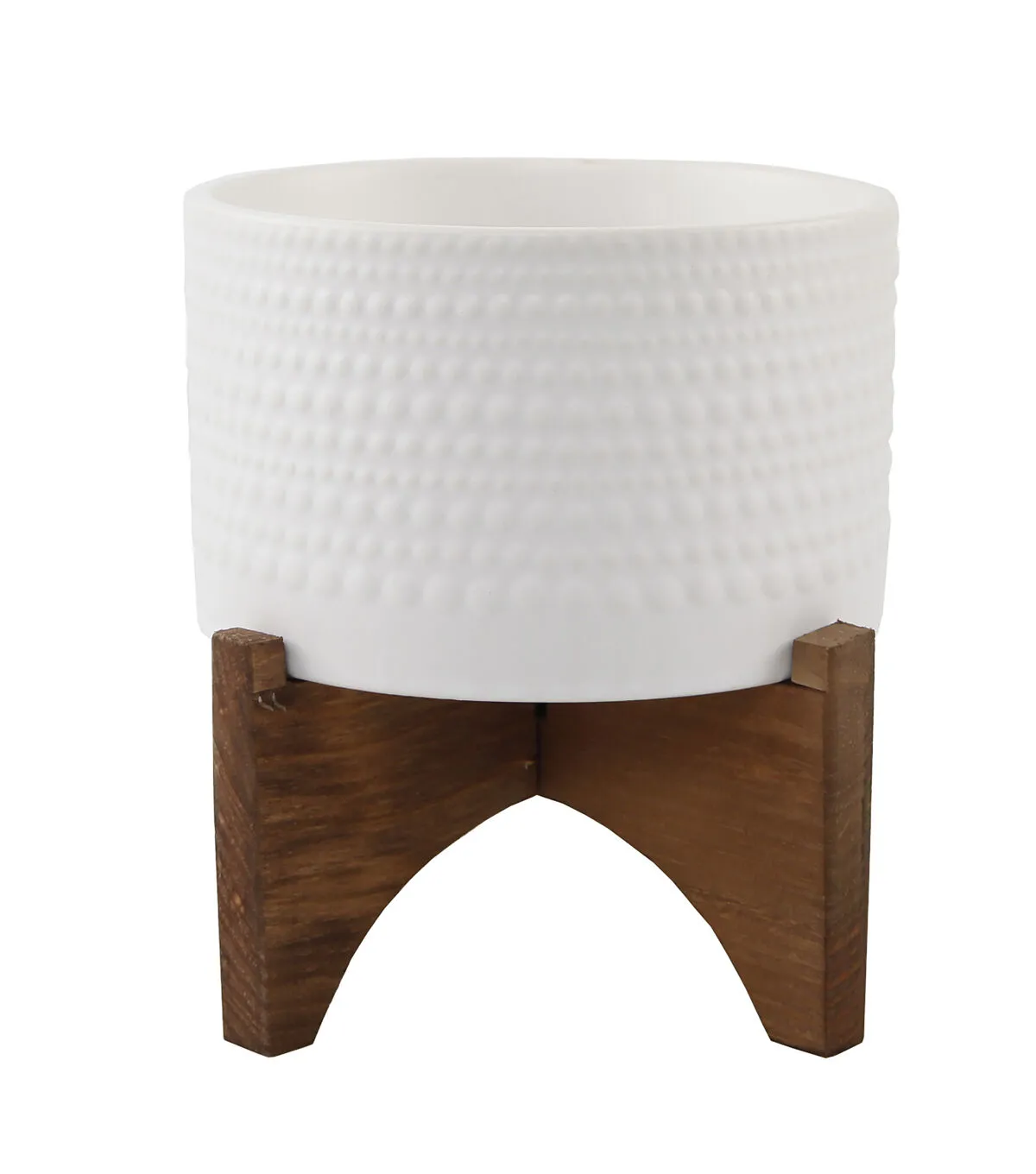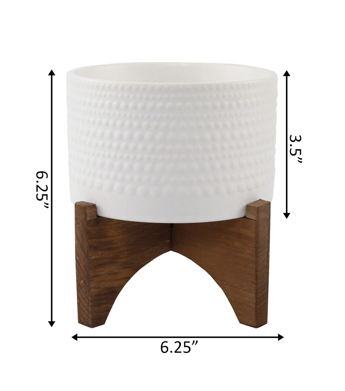 Flora Bunda 5" White Hobnail Ceramic Planter on Wood Stand