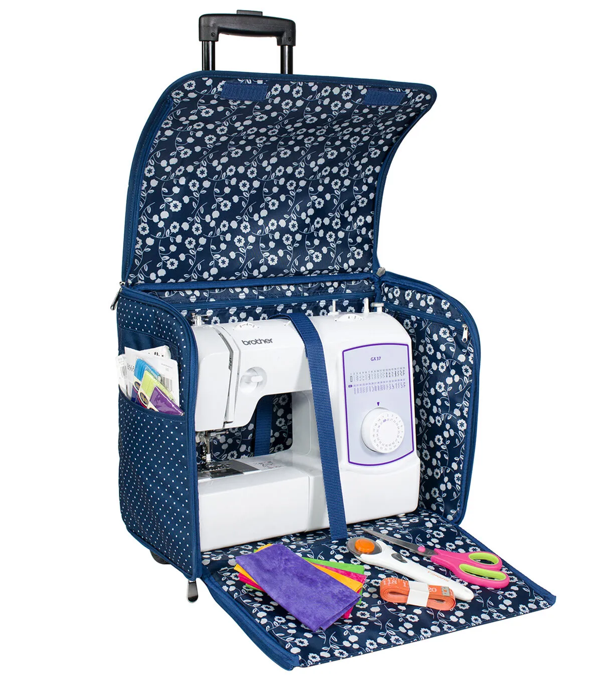 Everything Mary 16" Dots on Blue Collapsible Rolling Sewing Machine Case