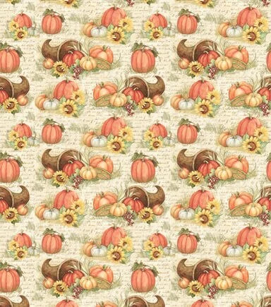 Susan Winget Pumpkins And Cornucopia Fall Cotton Fabric