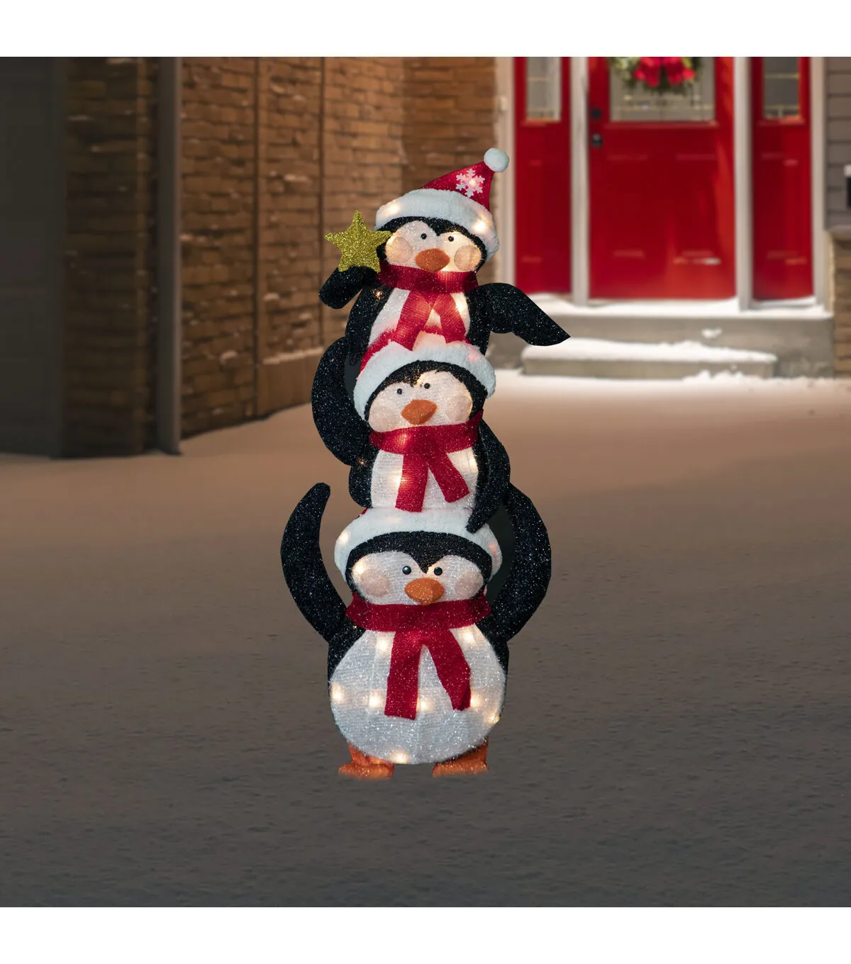 Northlight 41" Christmas Lighted Stacked Penguin Family