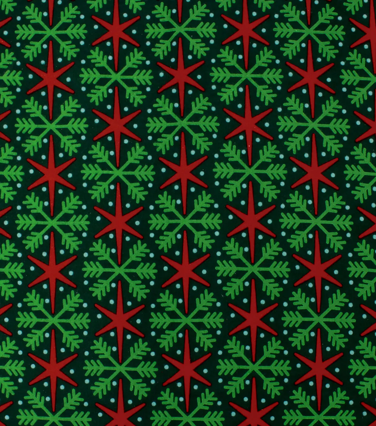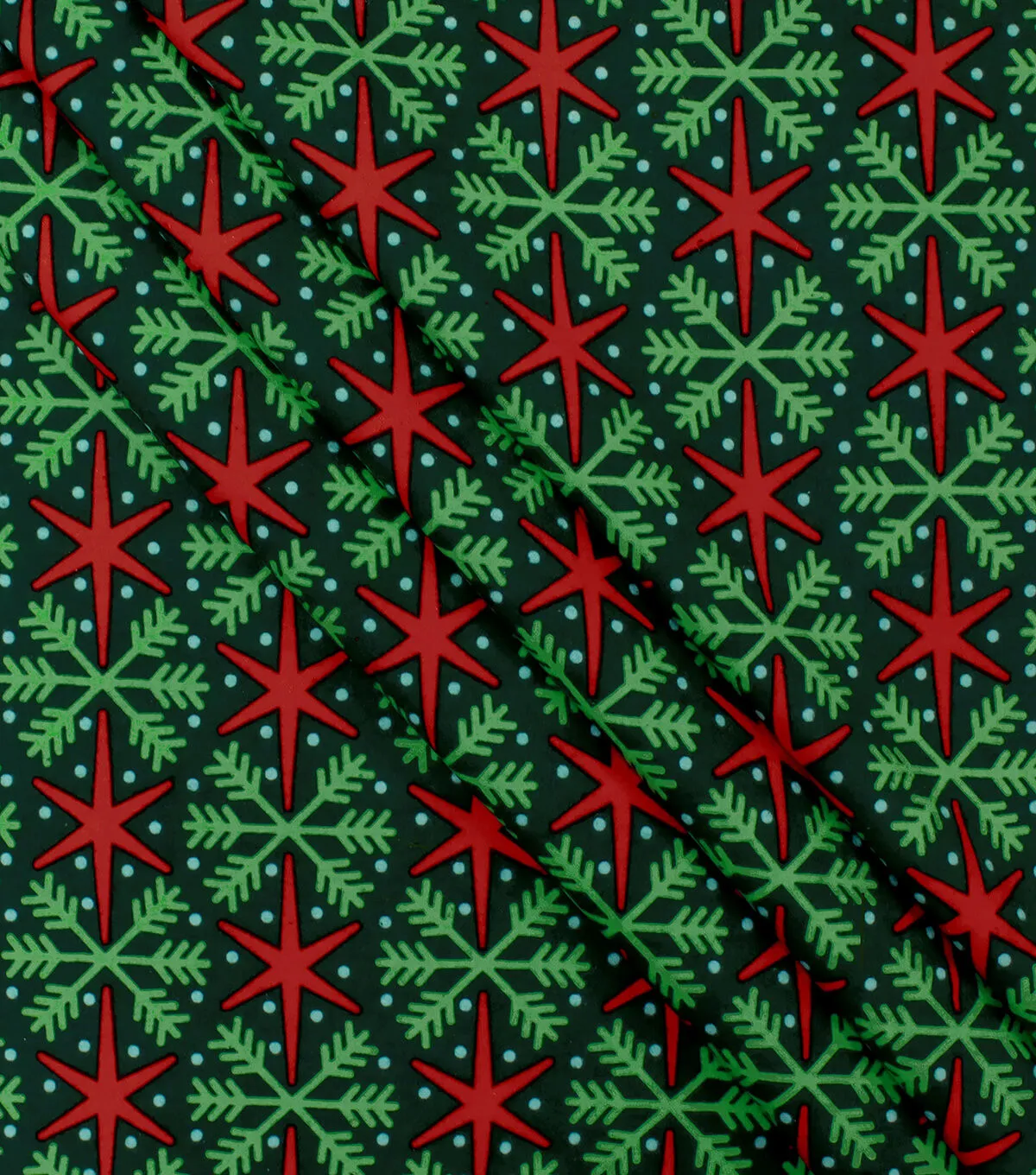 Green Snowflakes on Red Super Snuggle Christmas Flannel Fabric