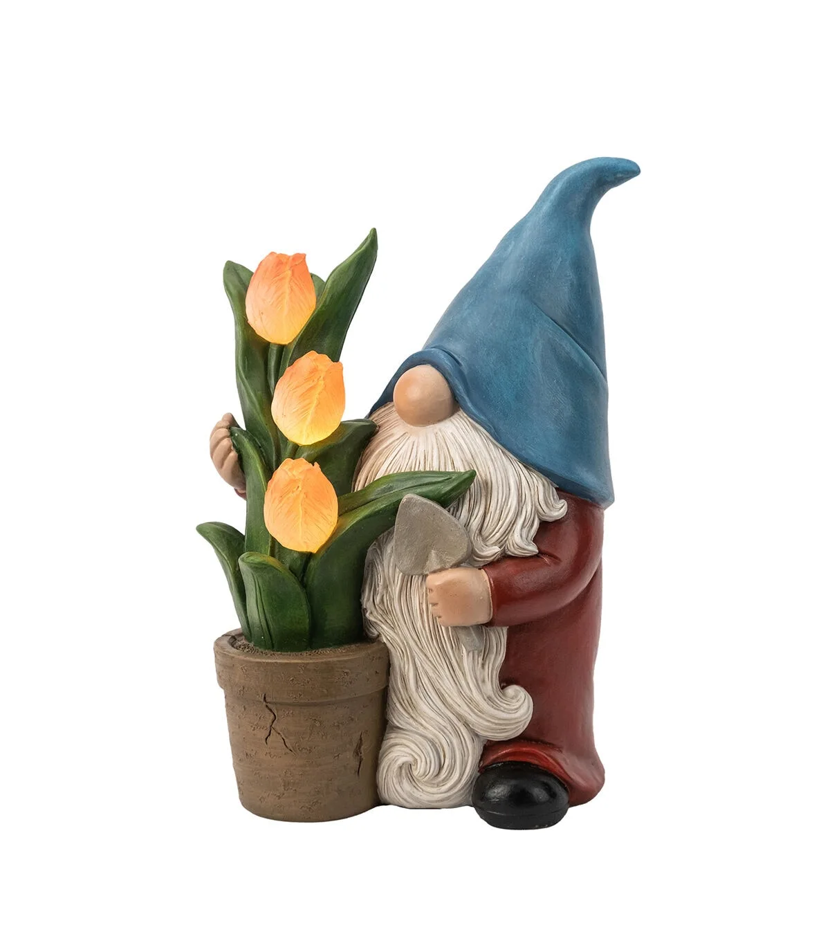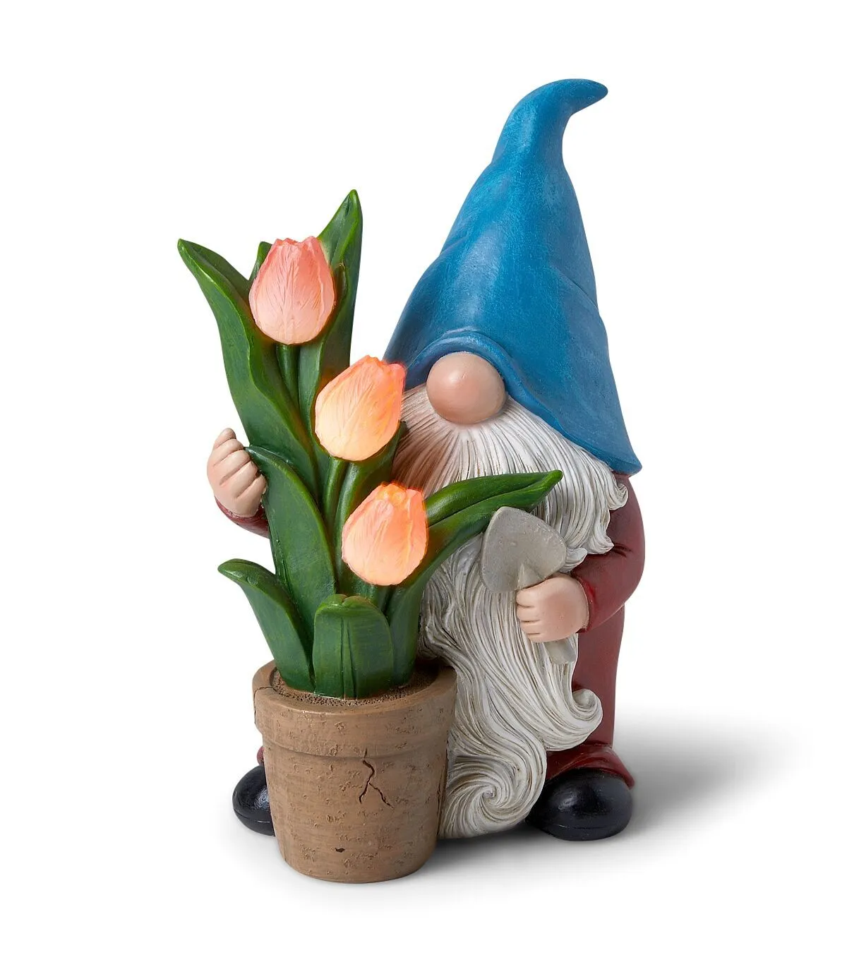 9" Spring Gnome & Tulip Pot Outdoor Solar Garden Statue by Place & Time