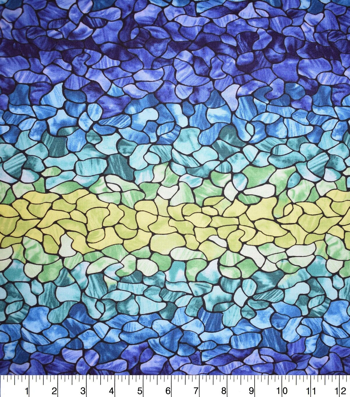 Premium Quilt Cotton Fabric Ombre Blue Stained Glass