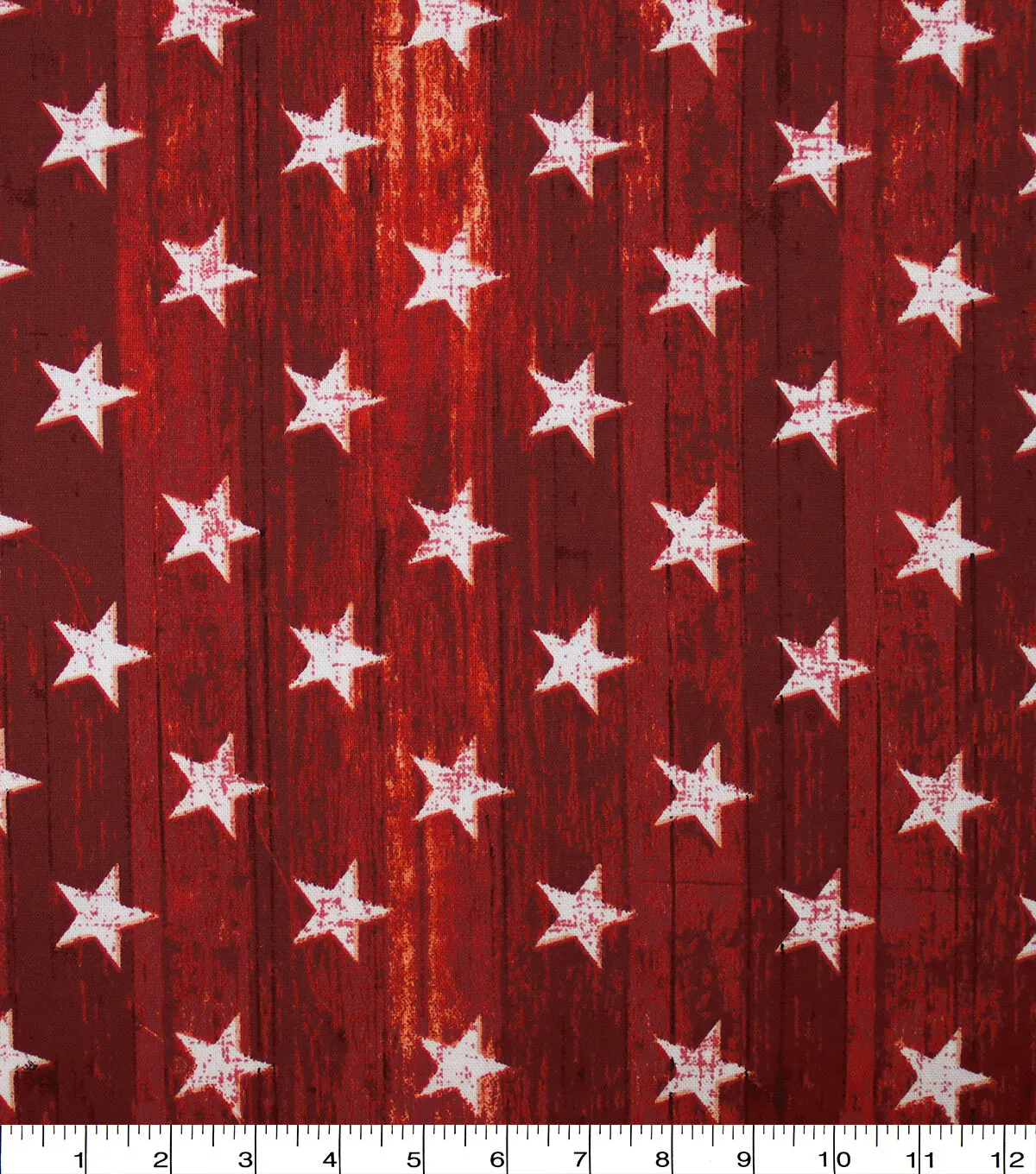 Rustic Stars On Red Plank Wide 108'' Cotton Fabric