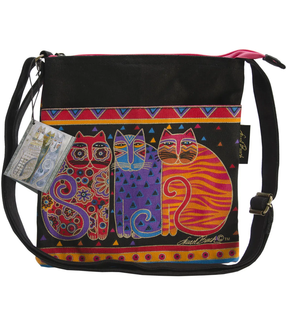 Laurel Burch Crossbody Purse Zipper Top 10"X10" Feline Friends