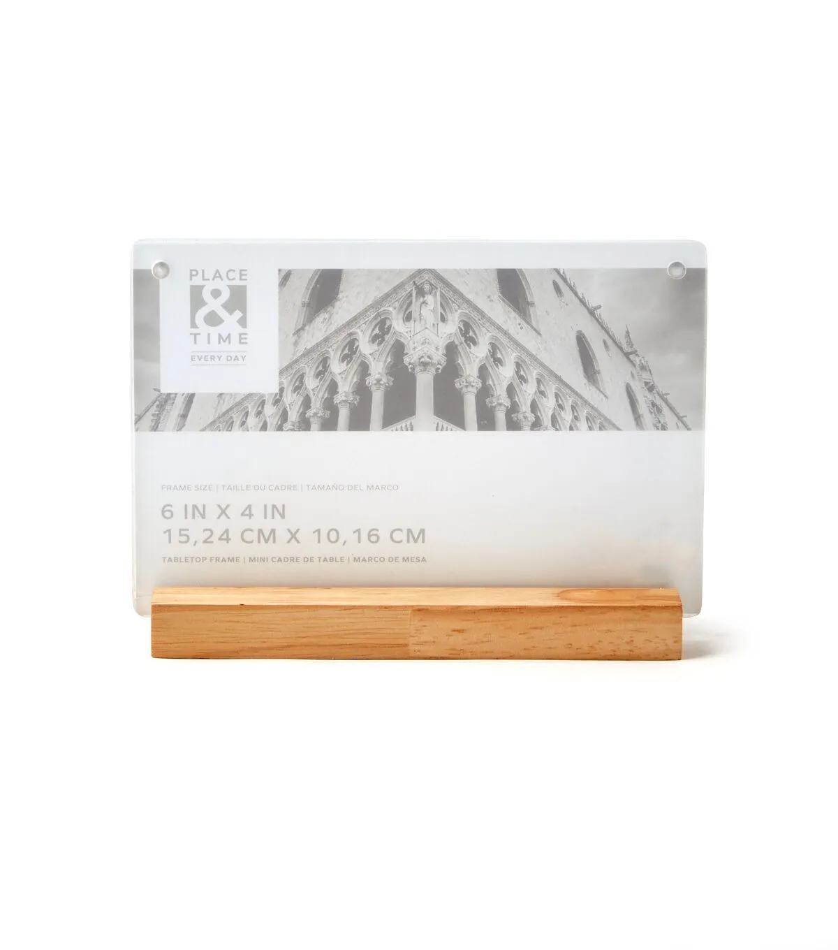 6" x 4" Acrylic Tabletop Picture Frame With Wood Base by Place & Time