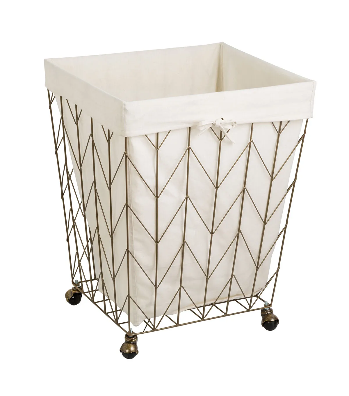 Honey Can Do 25" Bronze Chevron Wire Rolling Hamper With Canvas Liner