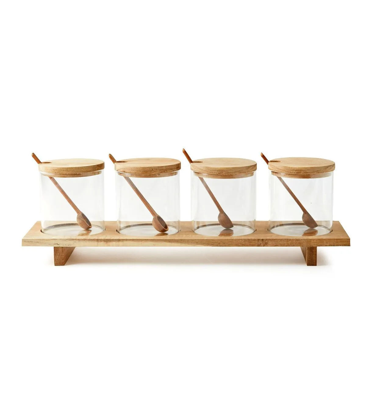 4ct Glass Jars & Wood Organization Shelf by Park Lane