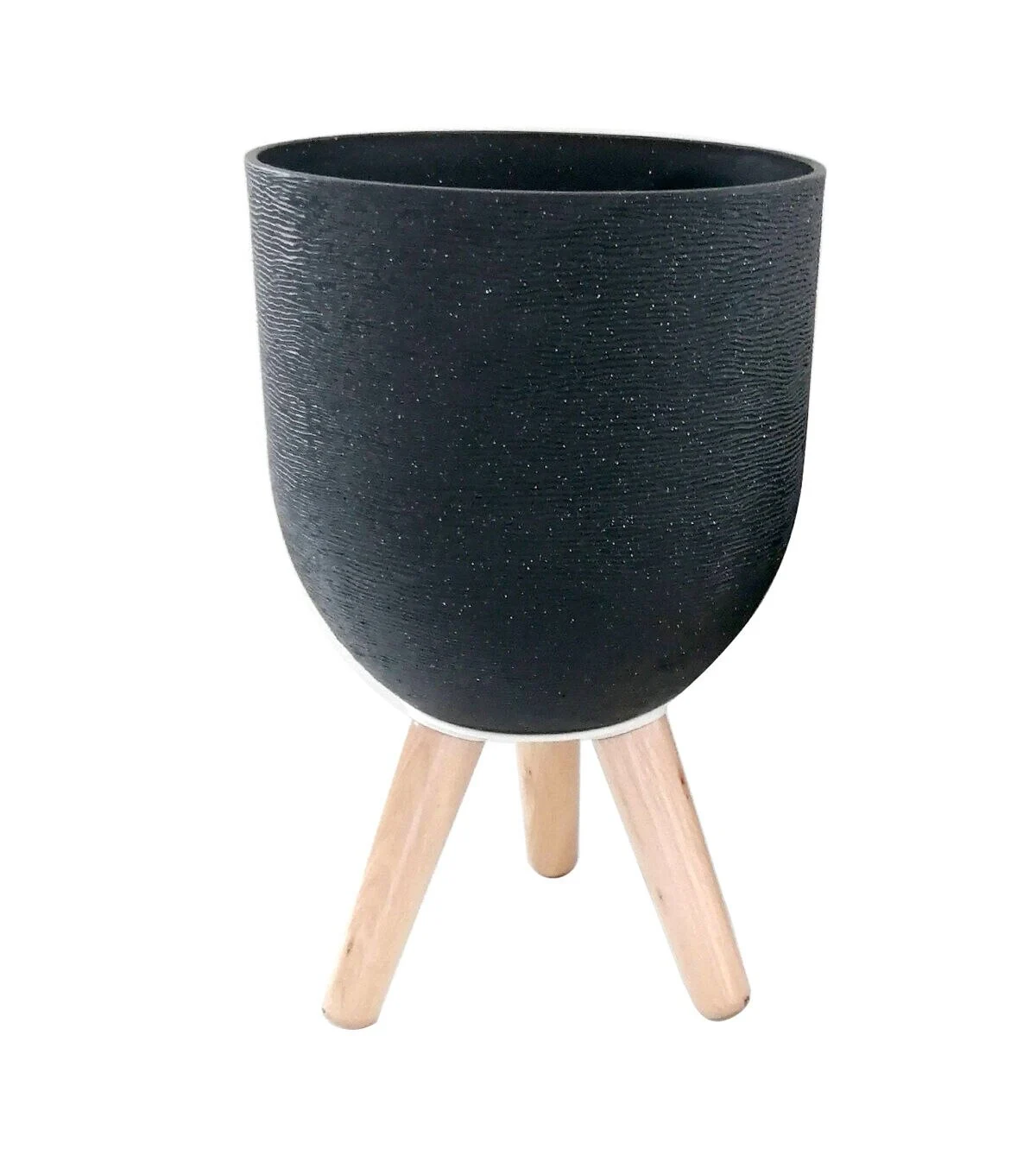 16" Spring Black Planter With Wood Legs by Place & Time