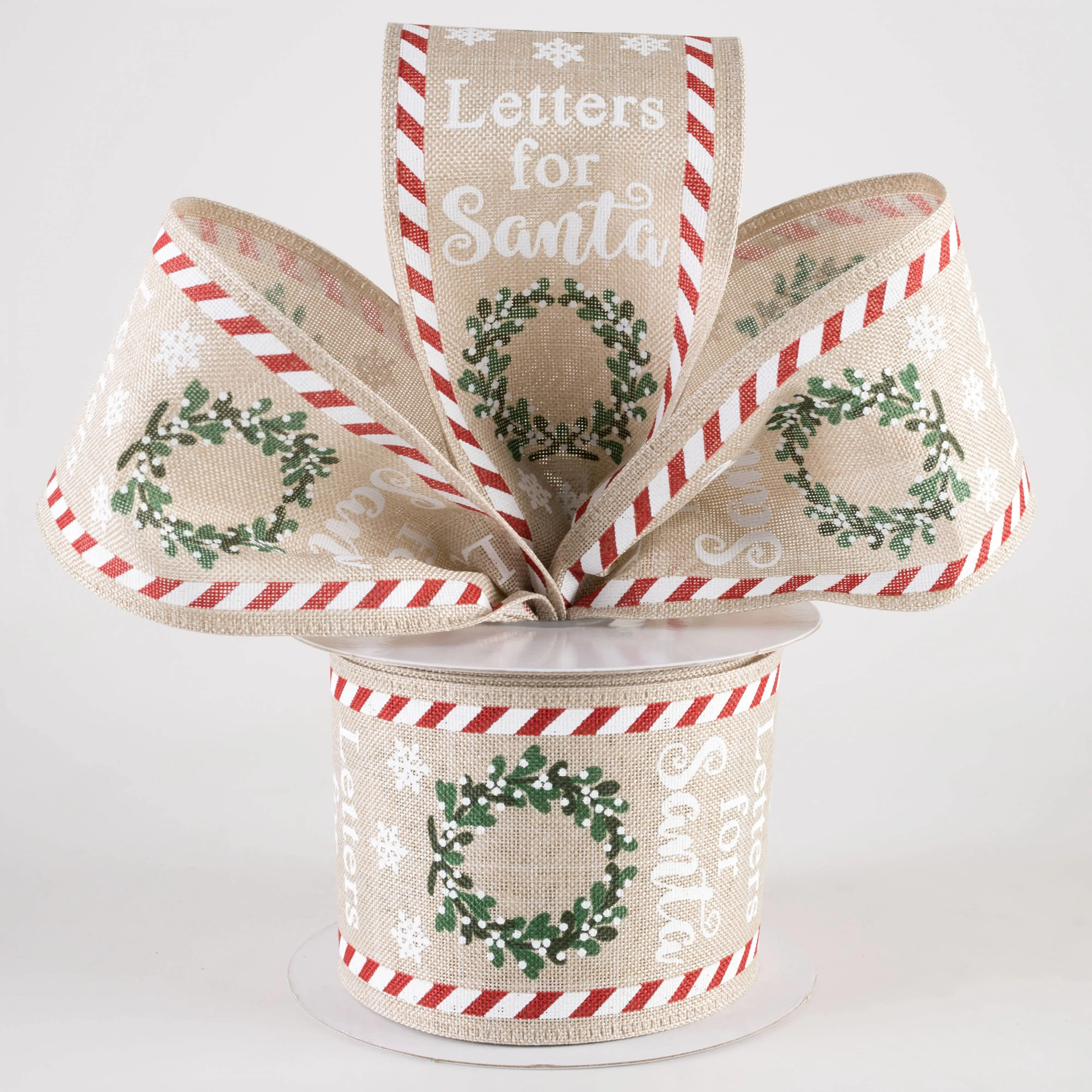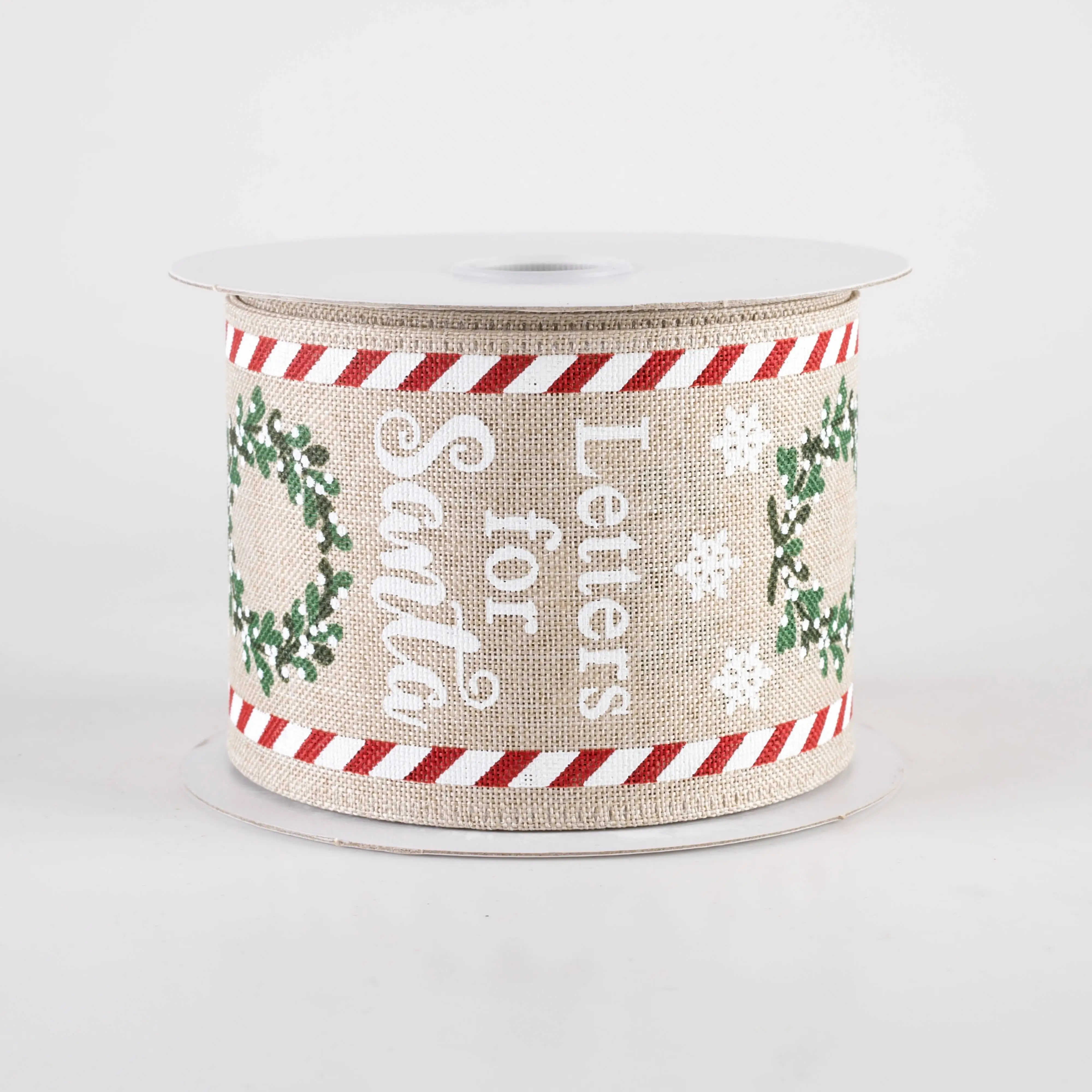 2.5" Linen Letters For Santa Ribbon: Natural (10 Yards)