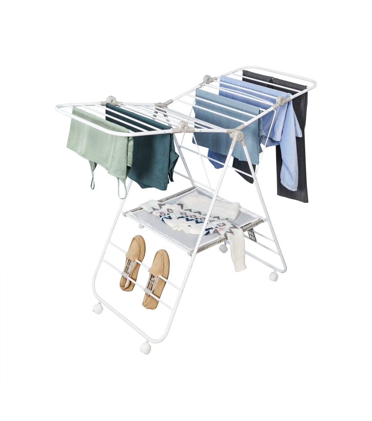 Honey Can Do 57" White Folding Gullwing Clothes Drying Rack With Wheels
