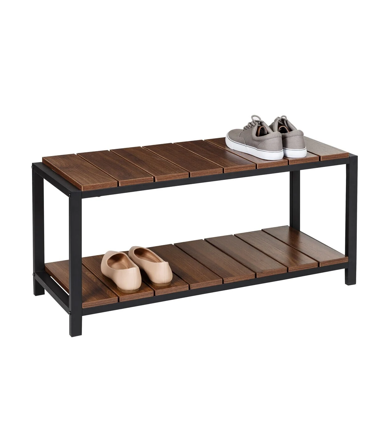 Honey Can Do 34" x 18" Walnut & Black 2 Tier Shoe Storage Bench