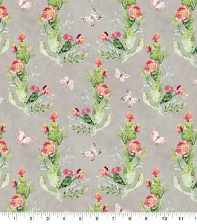Susan Winget Cactus on Gray Premium Cotton Fabric