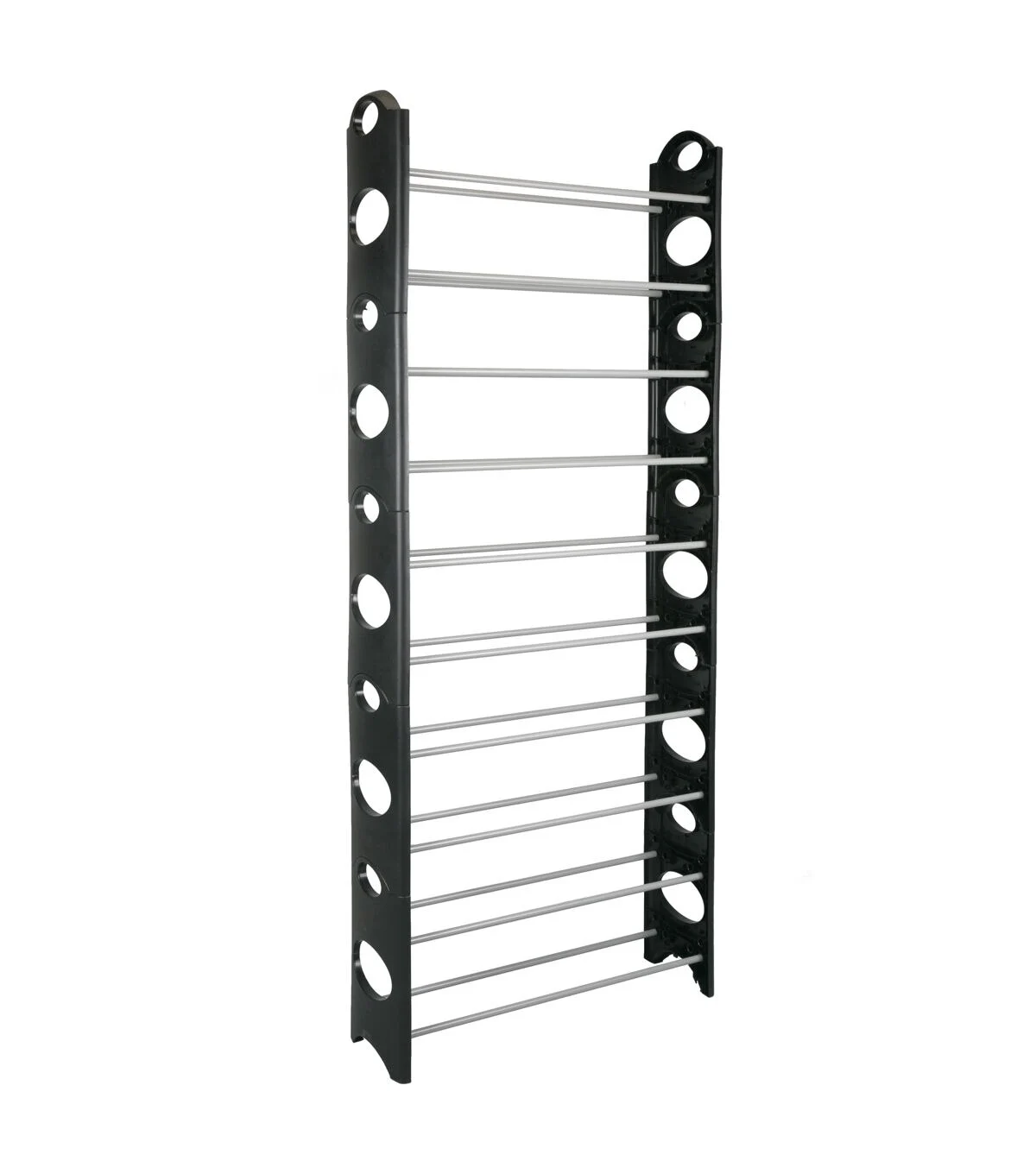 Simplify 61" Black 30 Pair Stackable Shoe Rack