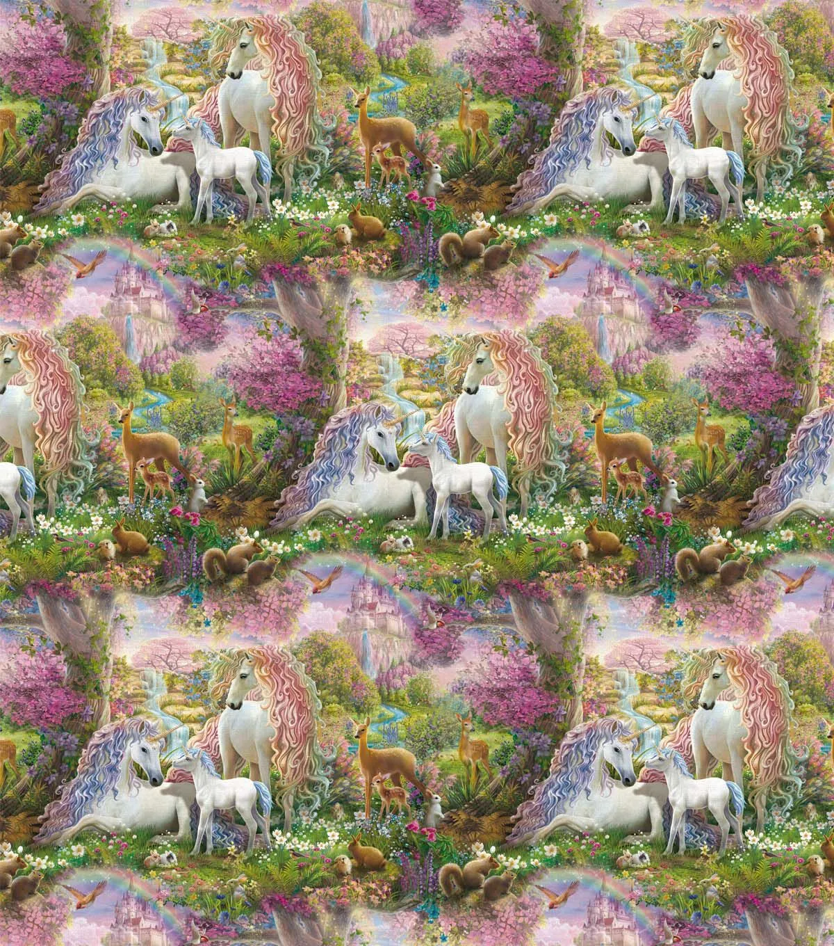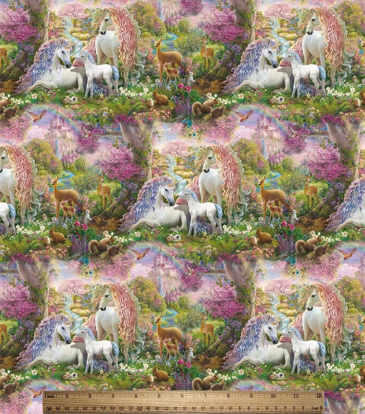 David Textiles Fairytale White Horses & Animals Novelty Cotton Fabric