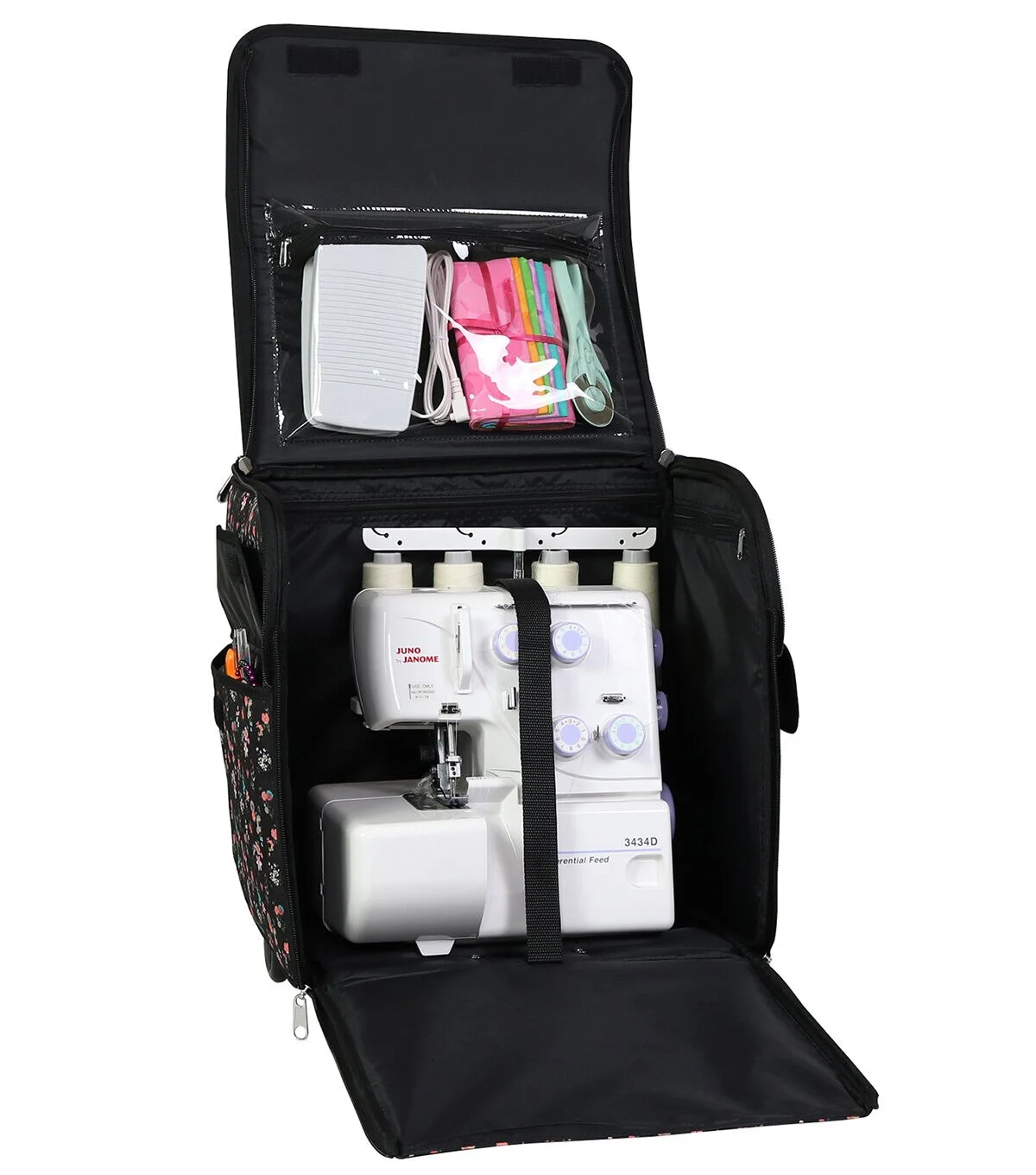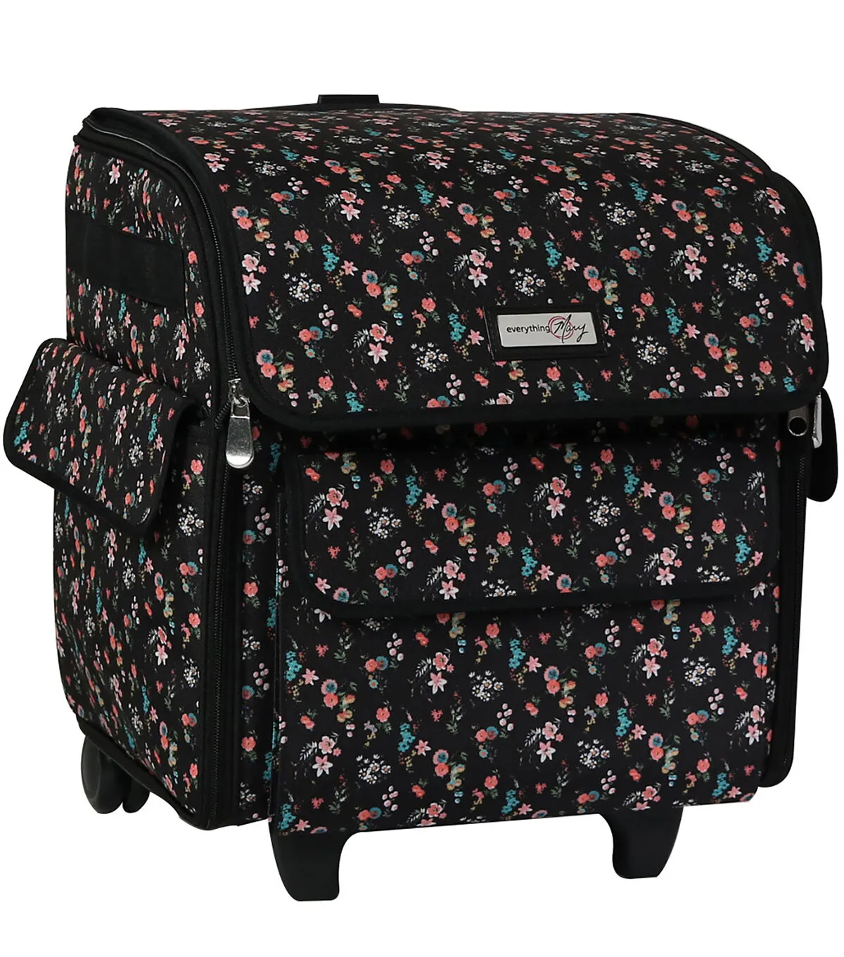 Everything Mary 15" Floral on Black Rolling Serger Machine Storage Case