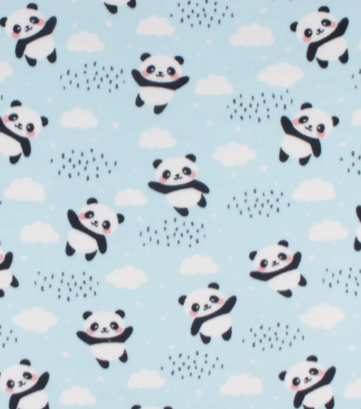 Pandas & Clouds on Blue Blizzard Fleece Fabric