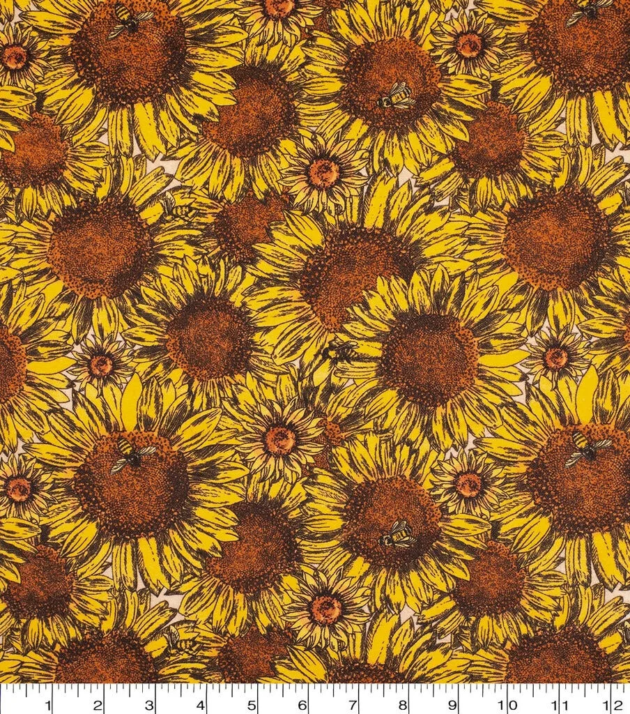 Super Snuggle Flannel Fabric Sunflowers & Bees