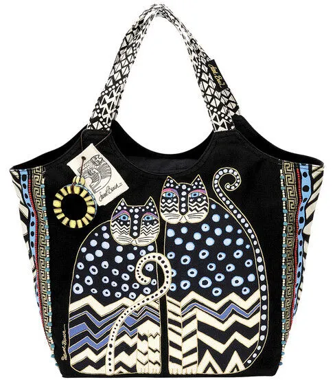 Laurel Burch Large Scoop Tote with Zipper Top Spotted Cats