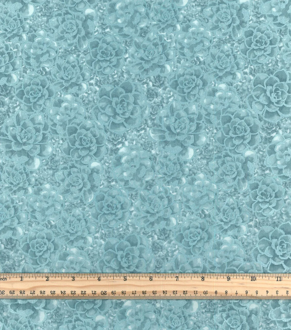Pearlescent Teal Succulent Quilt Cotton Fabric by Keepsake Calico