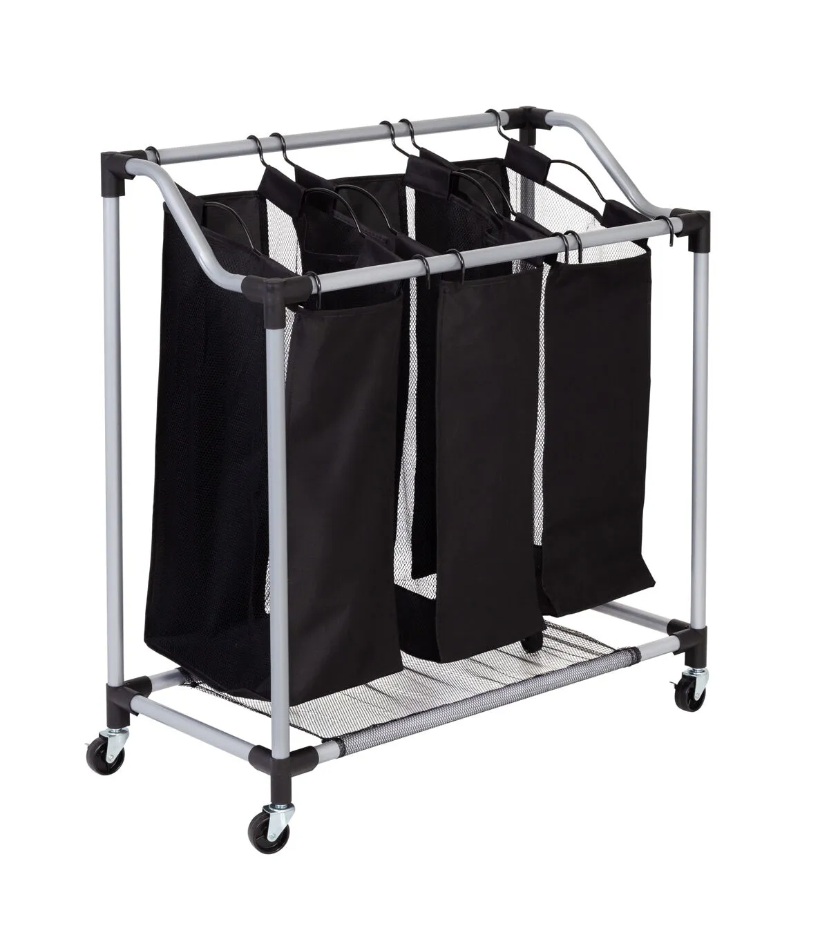 Honey Can Do 33" x 31" Black & Silver Rolling Triple Laundry Sorter