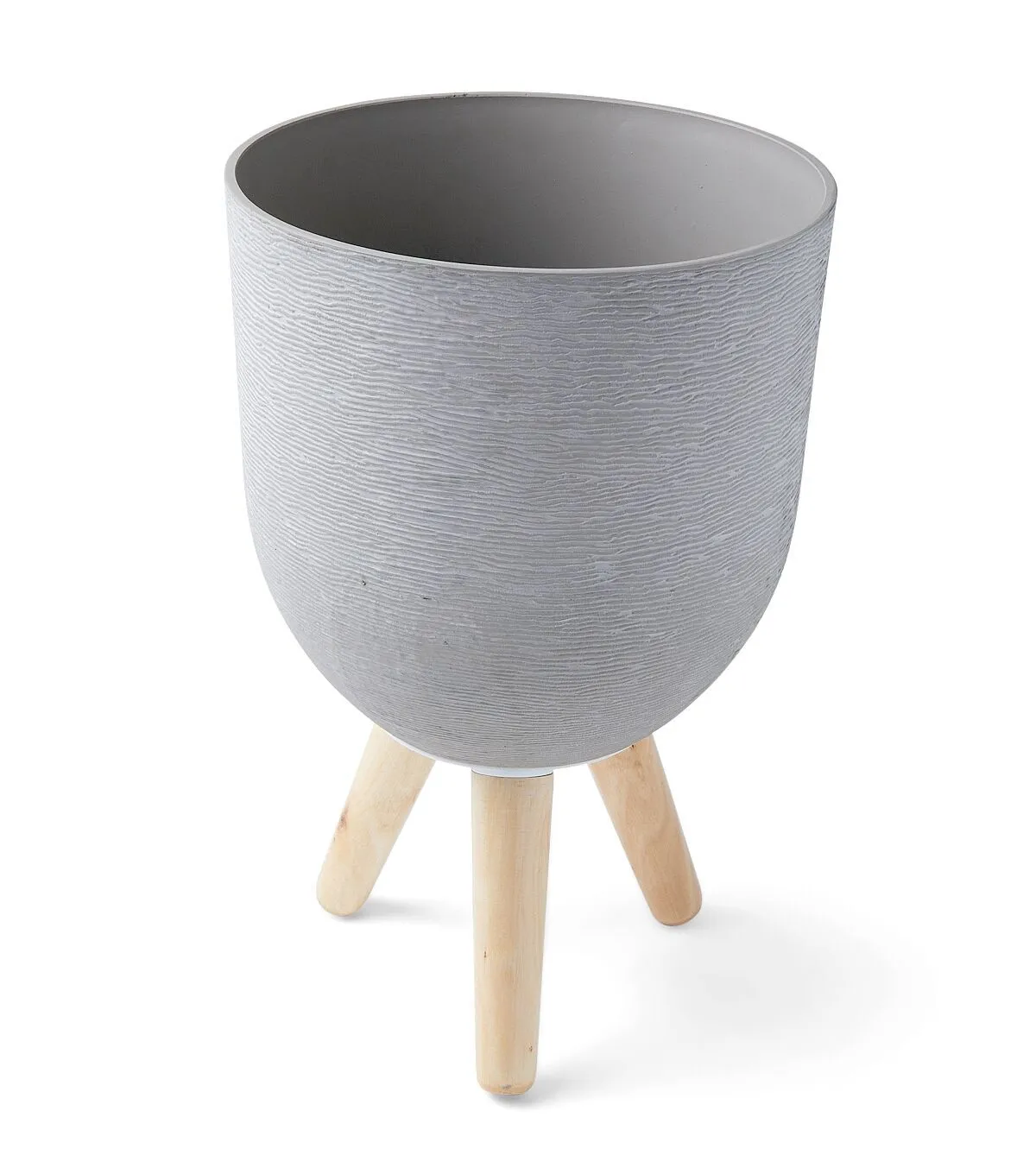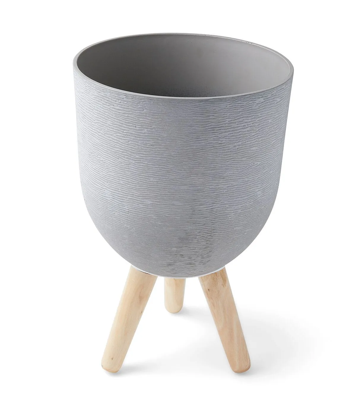 16" Spring Gray Planter With Wood Legs by Place & Time