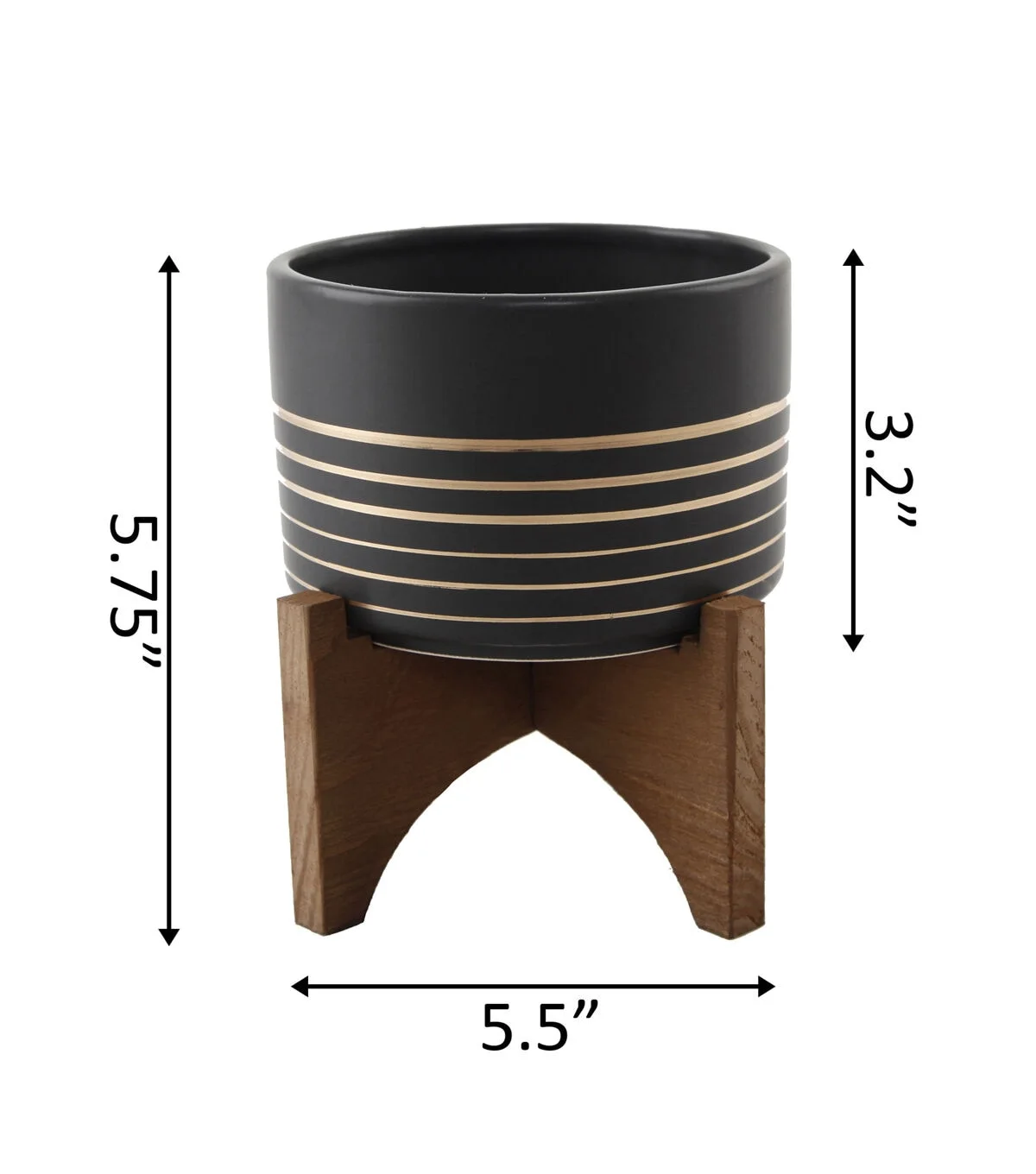 Flora Bunda 5" Ceramic Planter on Wood Stand