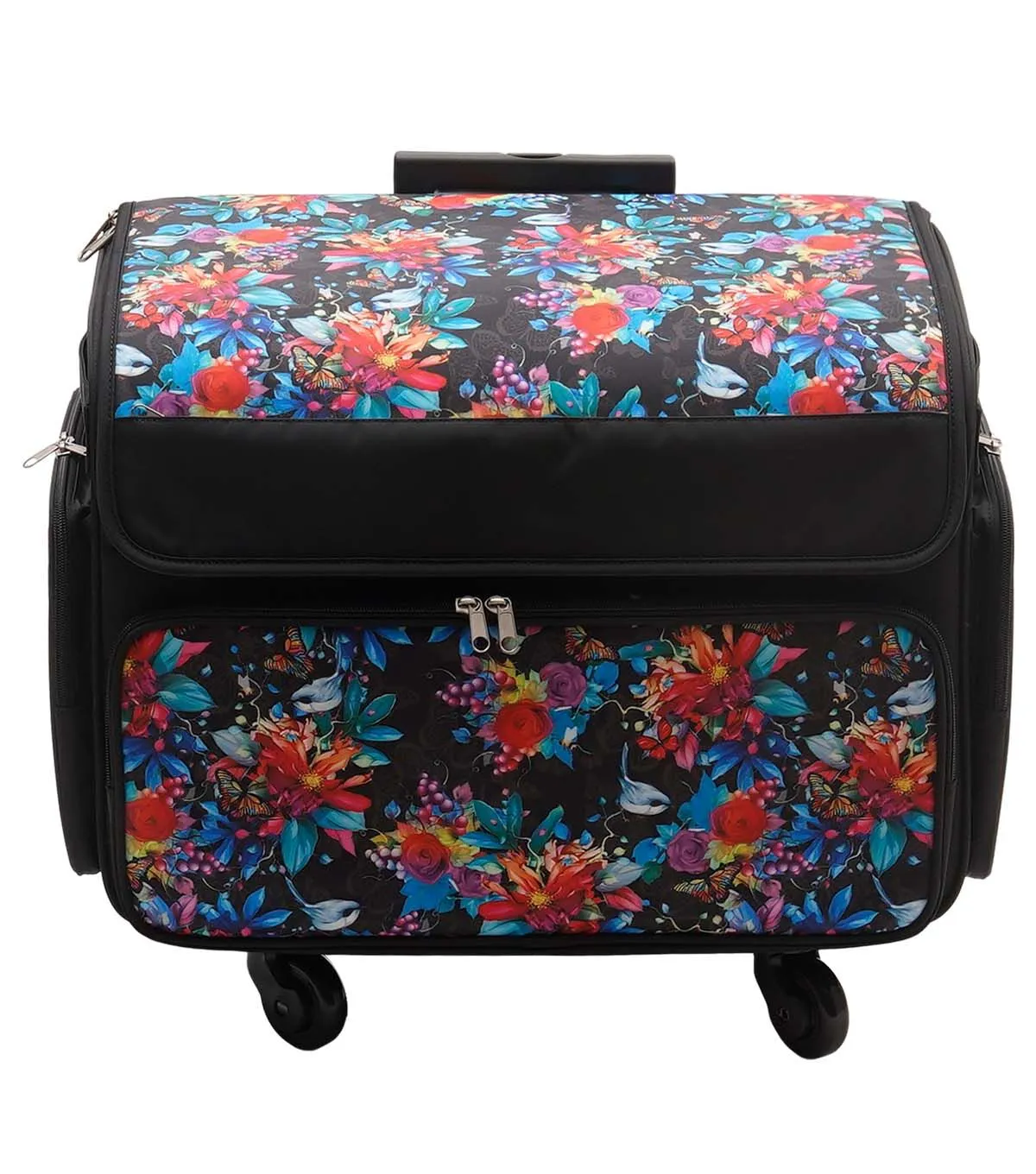 13" x 18" Floral & Butterfly on Black Rolling Sewing Storage Tote by Top Notch