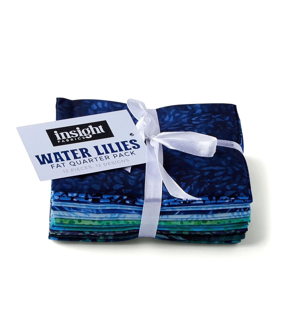 18" x 22" Blue Water Lilies Cotton Fabric Quarter Bundle 12pc