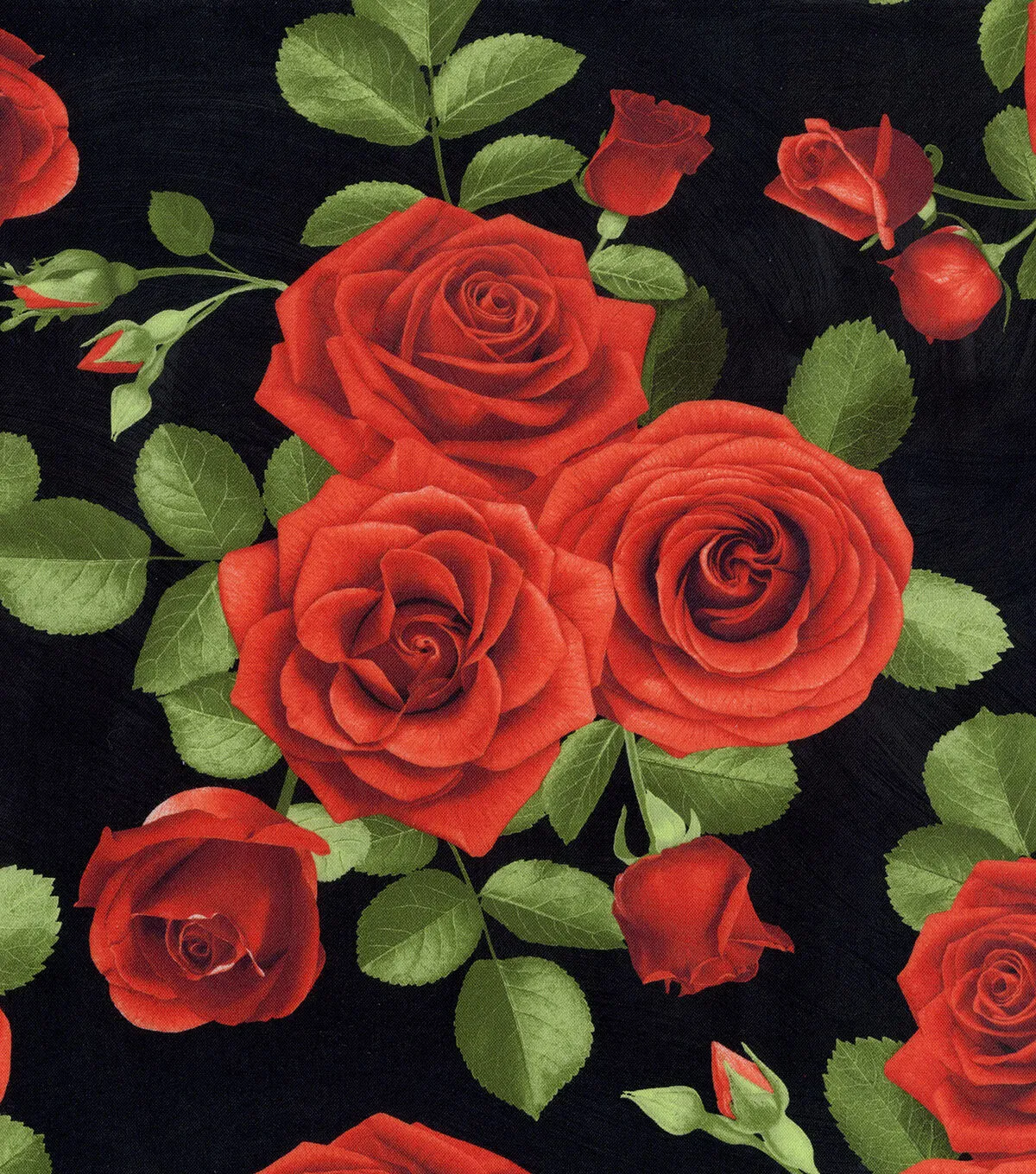 Hi Fashion Roses on Black Premium Cotton Fabric