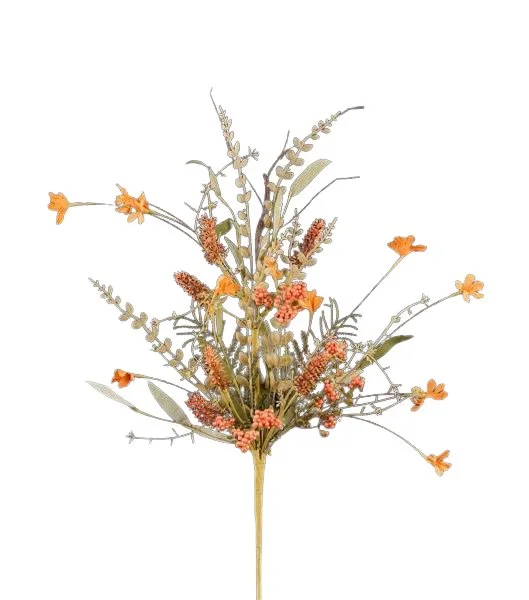 24" Fabric Flower/Eva Leaf Spray: Persimmon