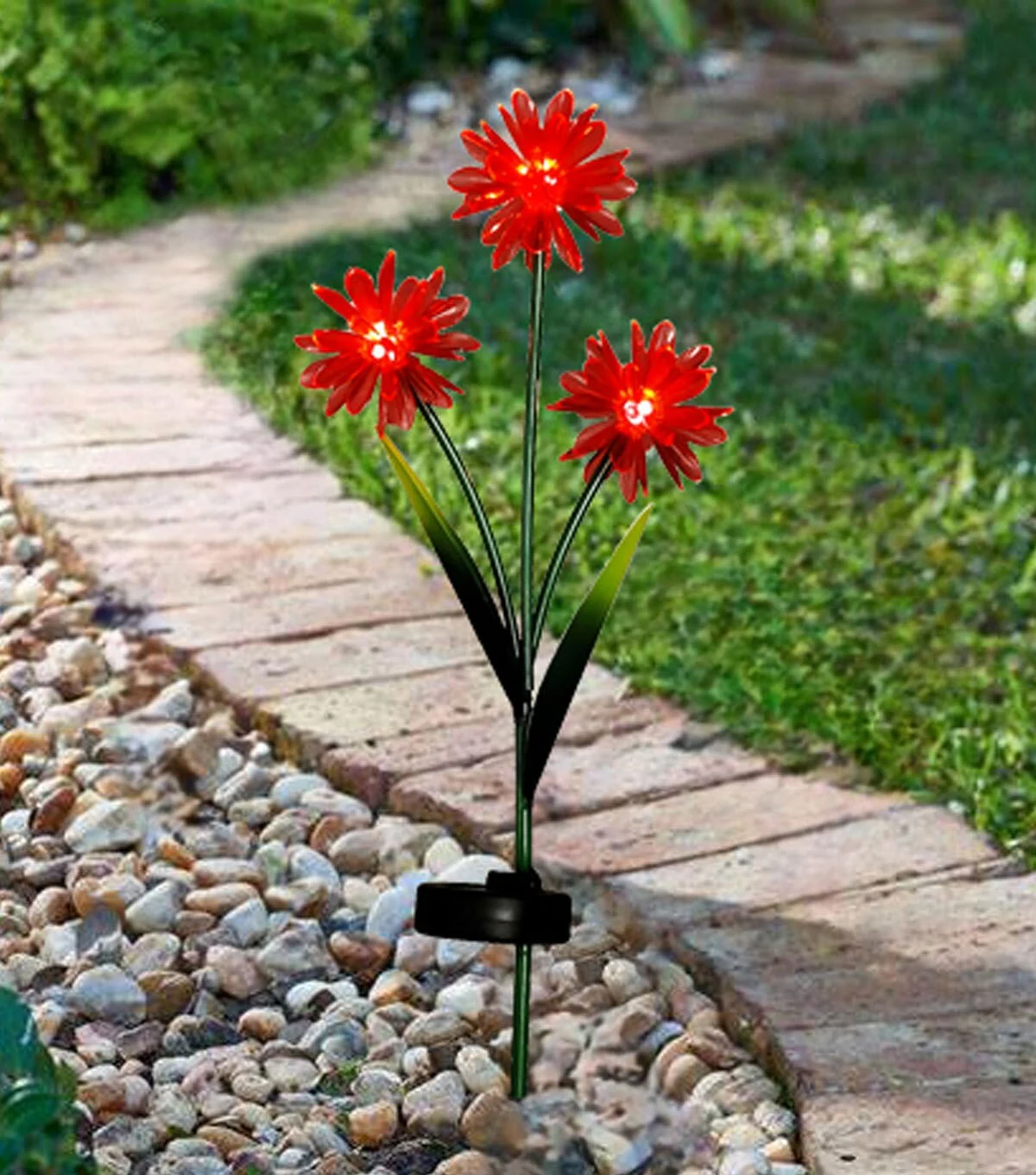 32" Spring Pink Triple Flower Solar Yard Stake by Place & Time