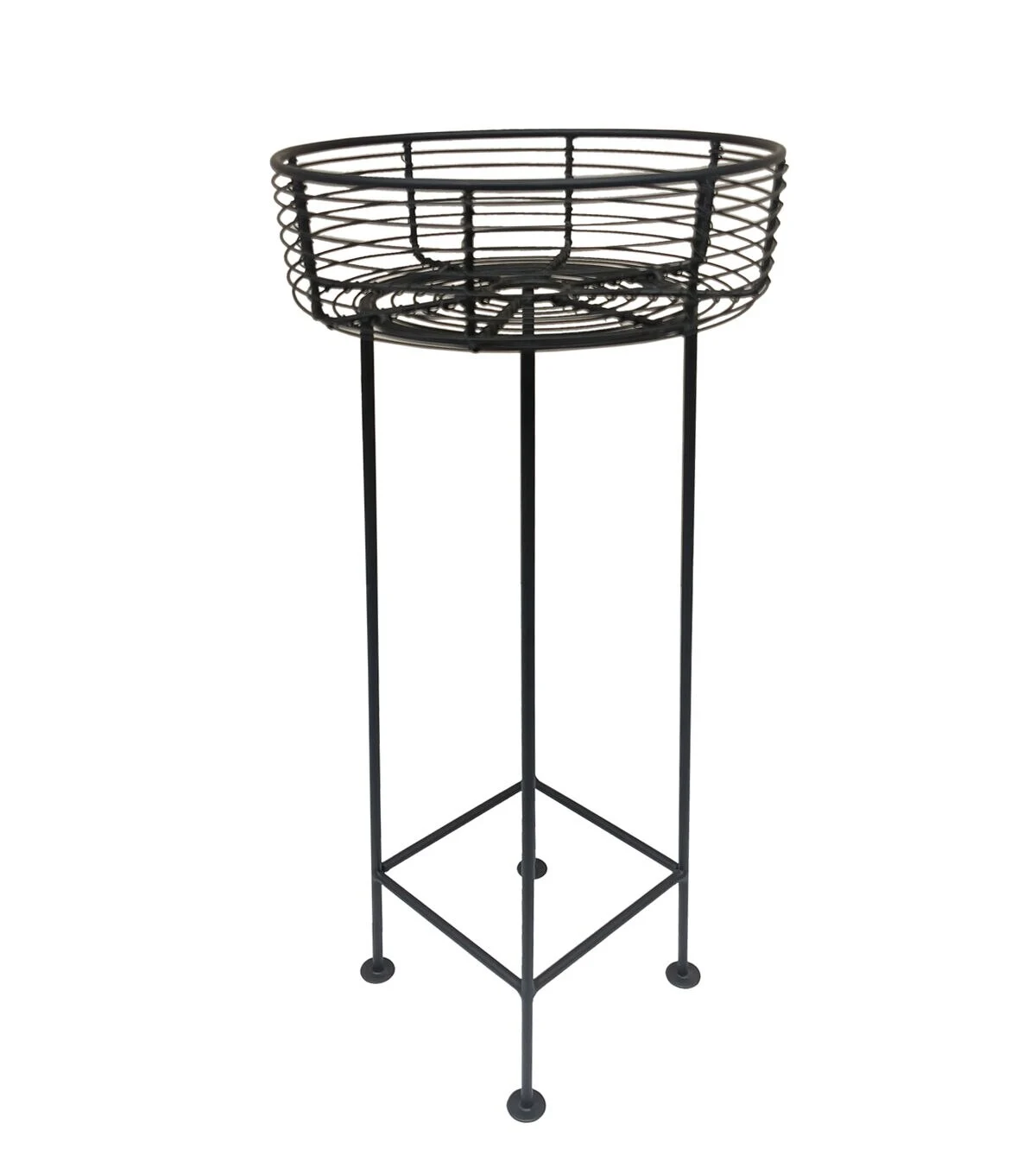 18" Spring Matte Black Iron Wire Basket Plant Stand by Place & Time