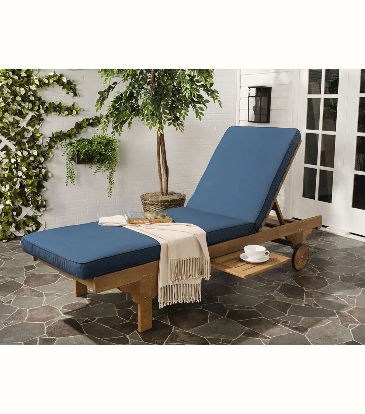 Safavieh 28" x 79" Navy Newport Outdoor Chaise Lounge With Side Table