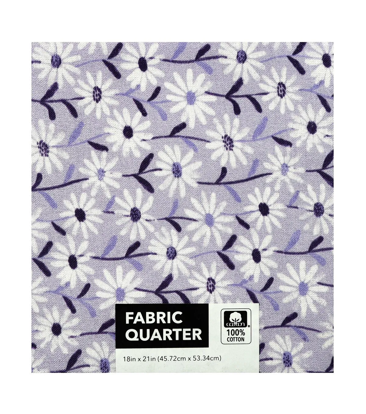 18" x 21" Daisies on Purple Cotton Fabric Quarter 1pc by Keepsake Calico