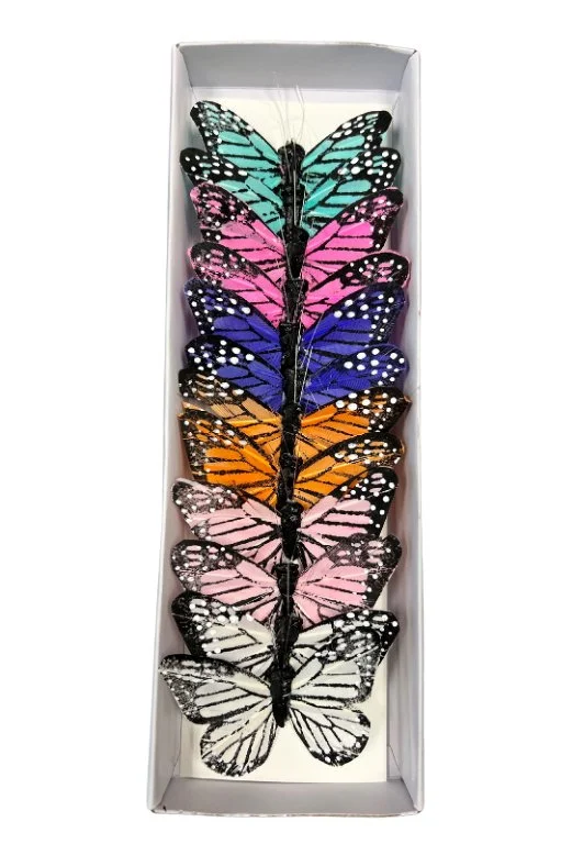 3" Multi Color Pack Monarch Butterflies on Wire, 12 pack