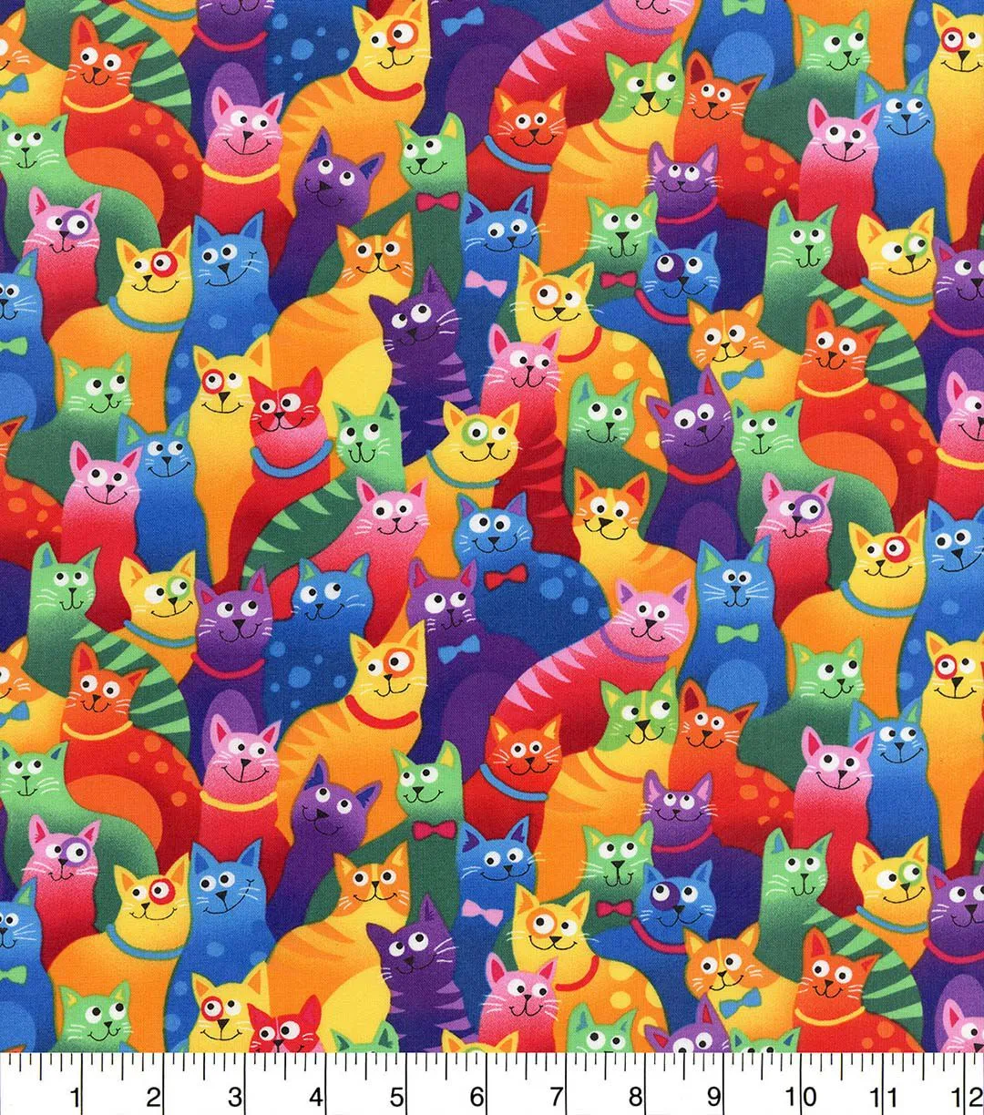 Hi Fashion Multicolor Cats Novelty Cotton Fabric
