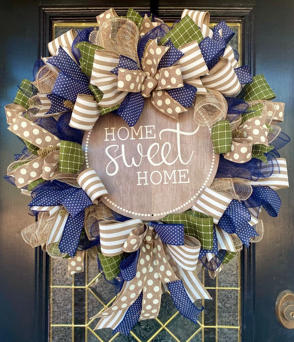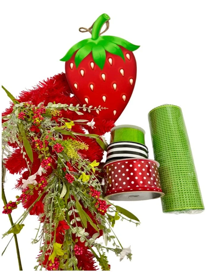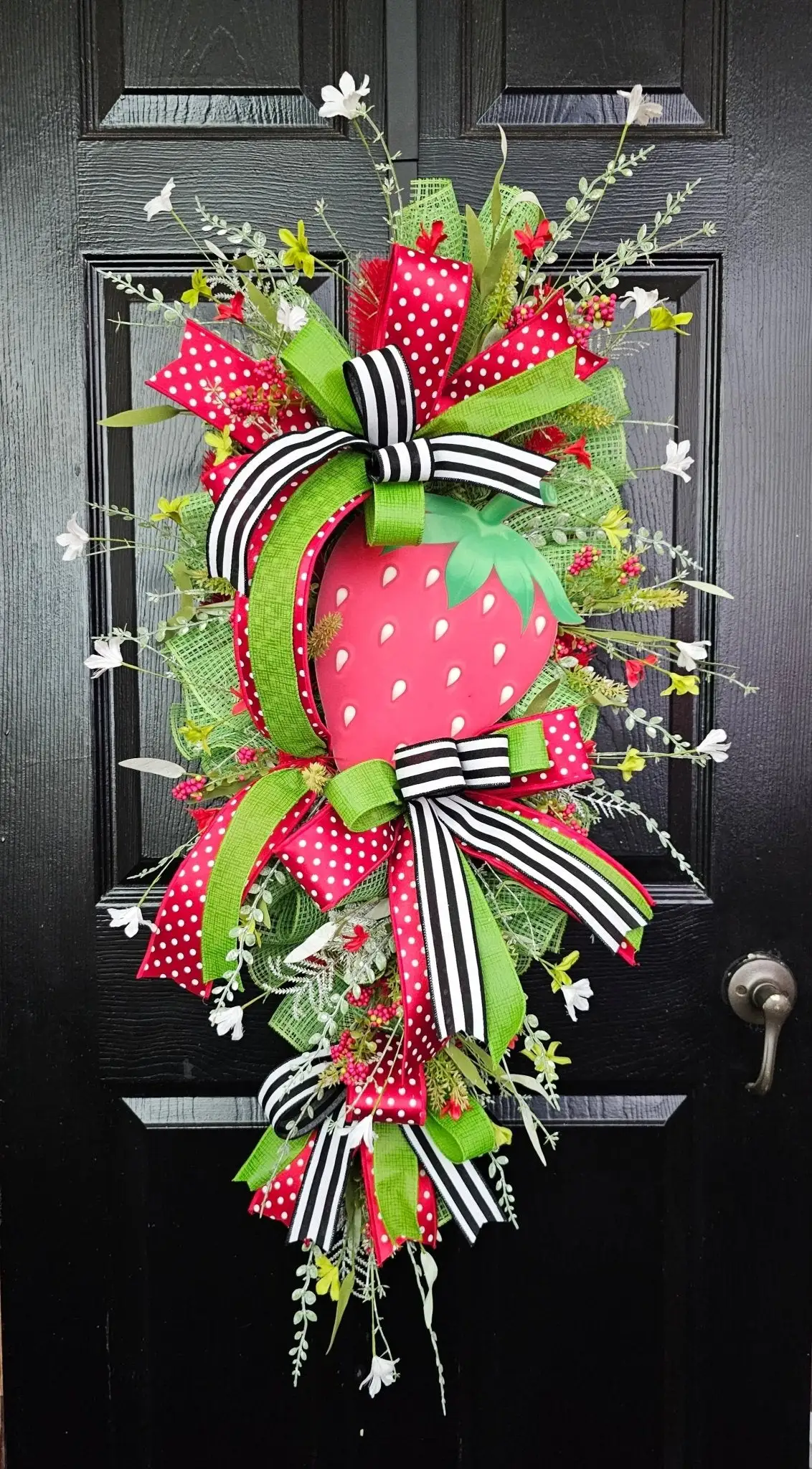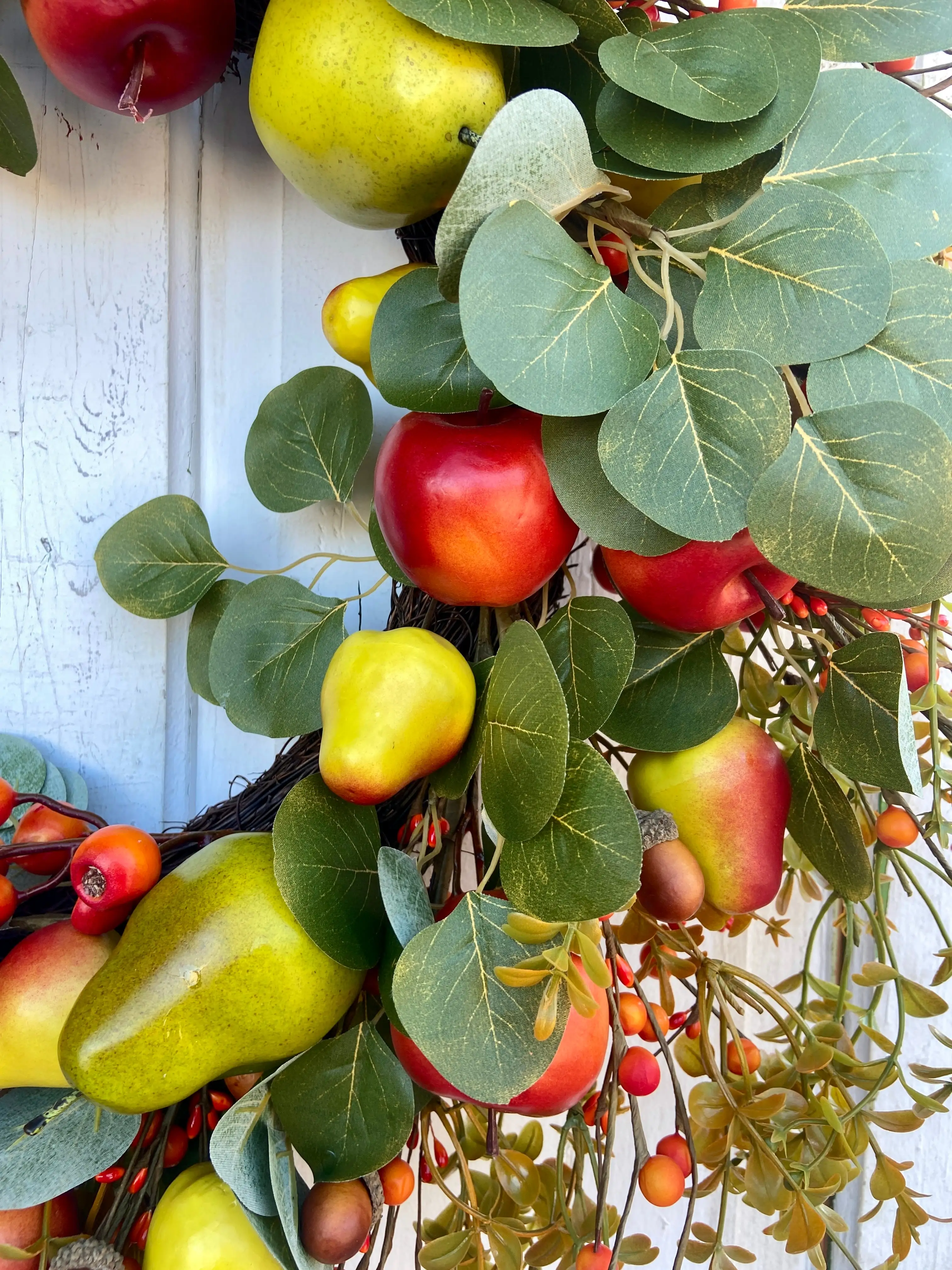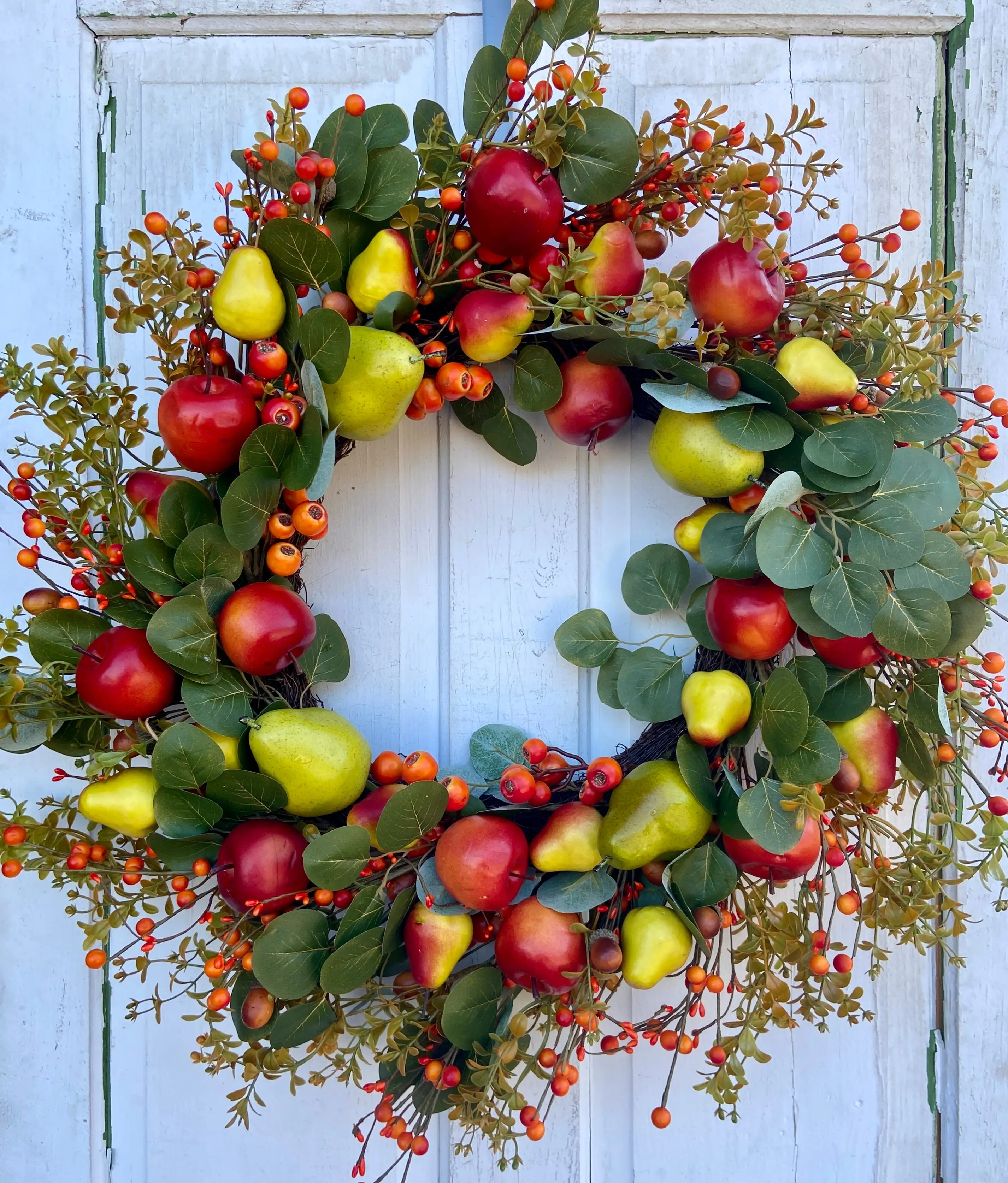 24 Inch Round Fruit Wreath, Fall Thanksgiving Welcome Front Door Decor, Red Apples, Green Pears, Leaves, Berries