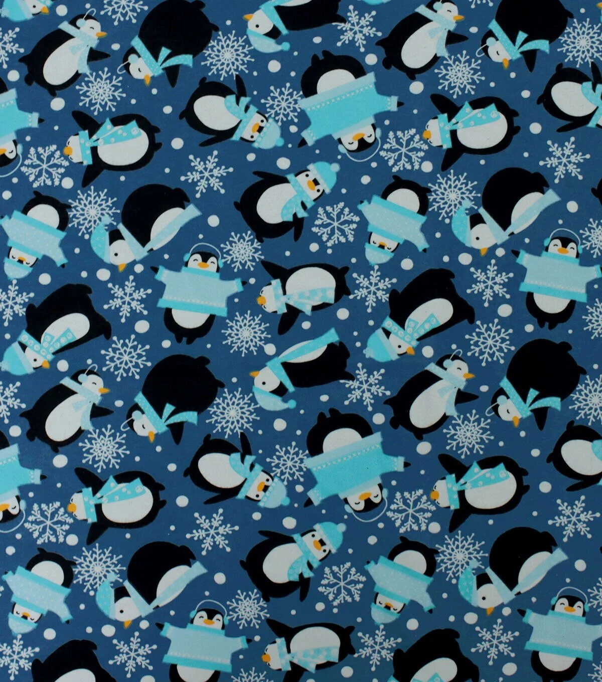 Penguins & Snowflakes on Blue Super Snuggle Christmas Flannel Fabric