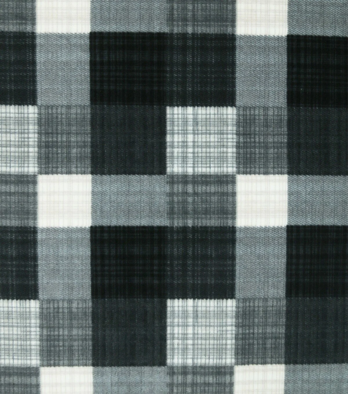 Black & Gray Sketched Plaid Anti Pill Fleece Fabric