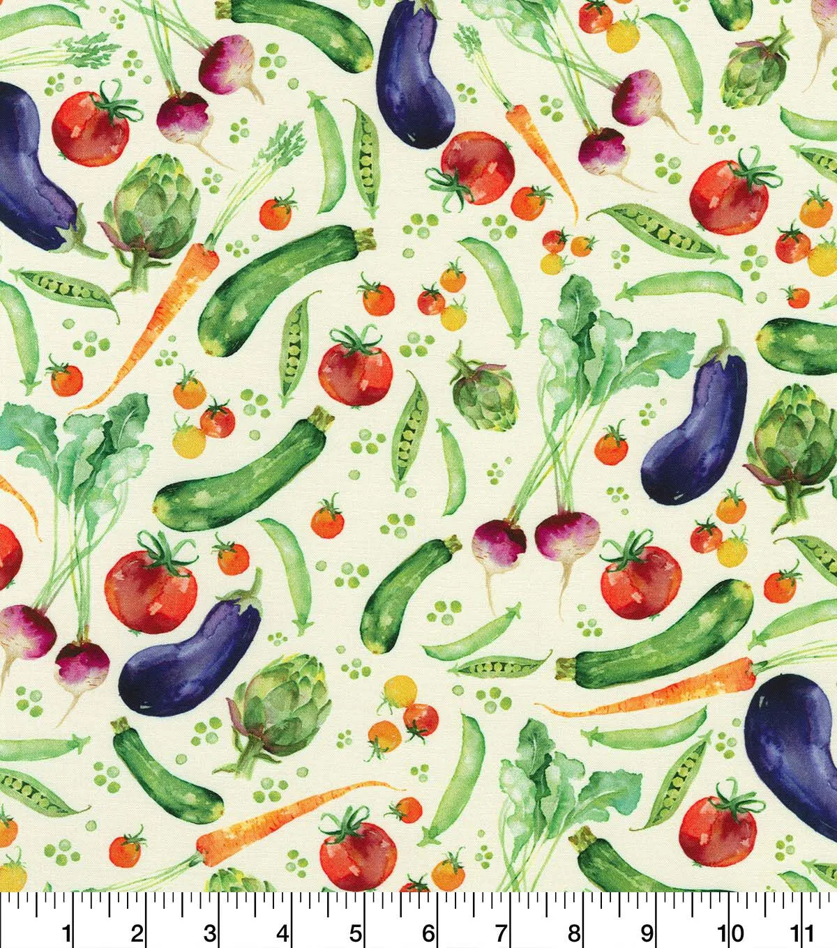 Robert Kaufman Fresh Veggies on White Novelty Cotton Fabric