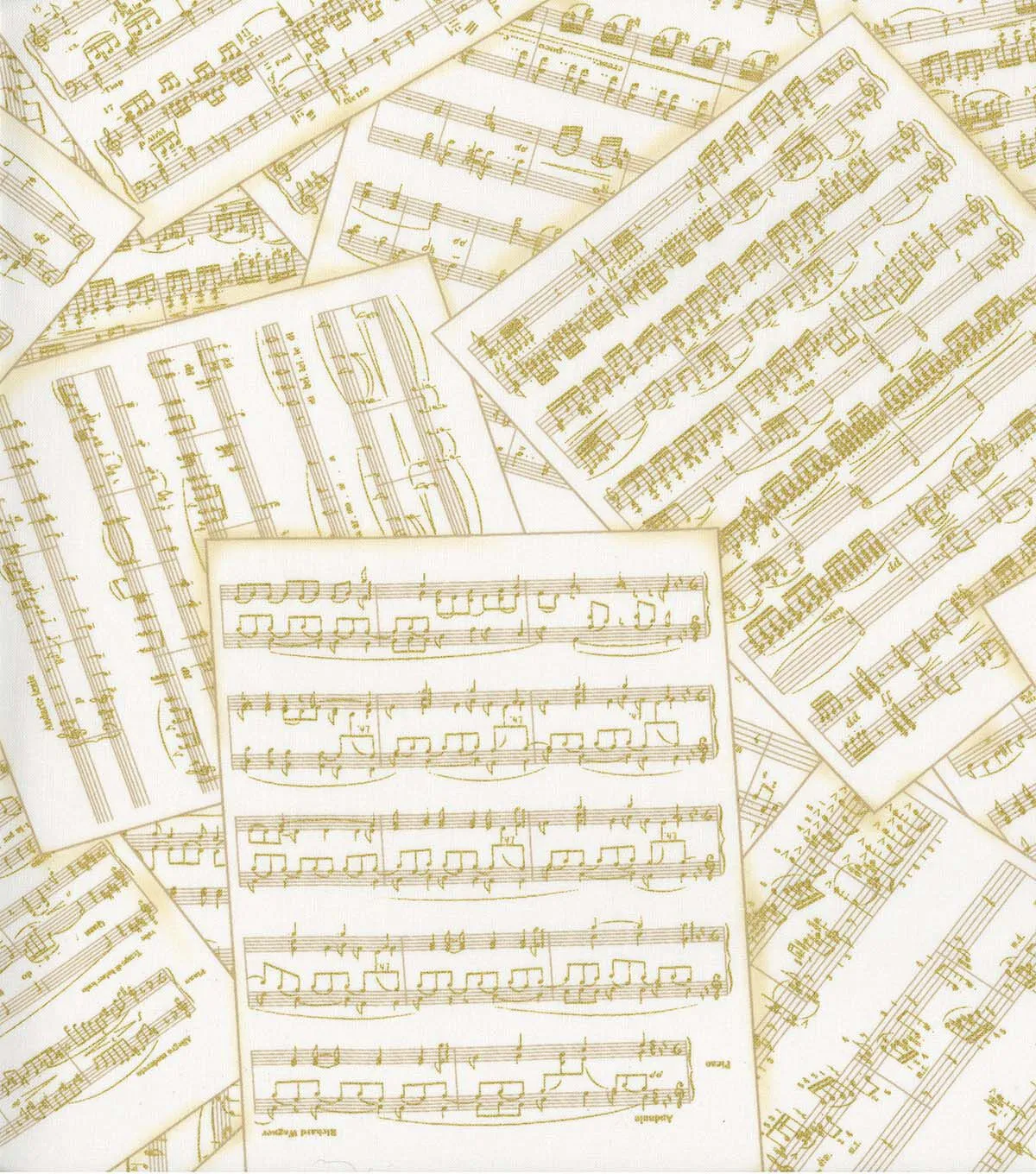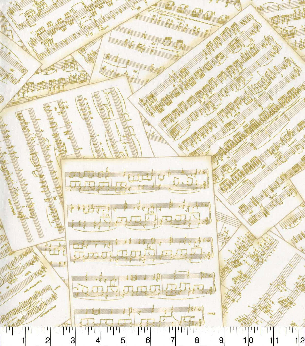 Hi Fashion Cream Sheet Music Novelty Metallic Cotton Fabric