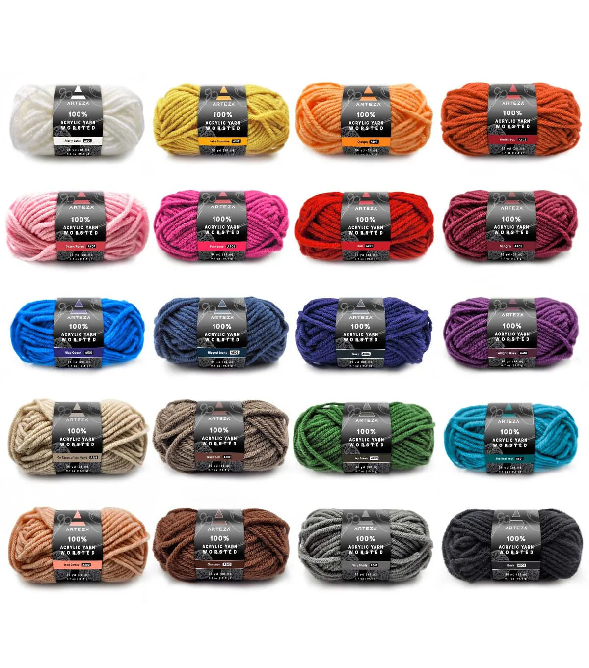 Arteza Dark Colors Premium Worsted Acrylic Yarn 20 Bundle
