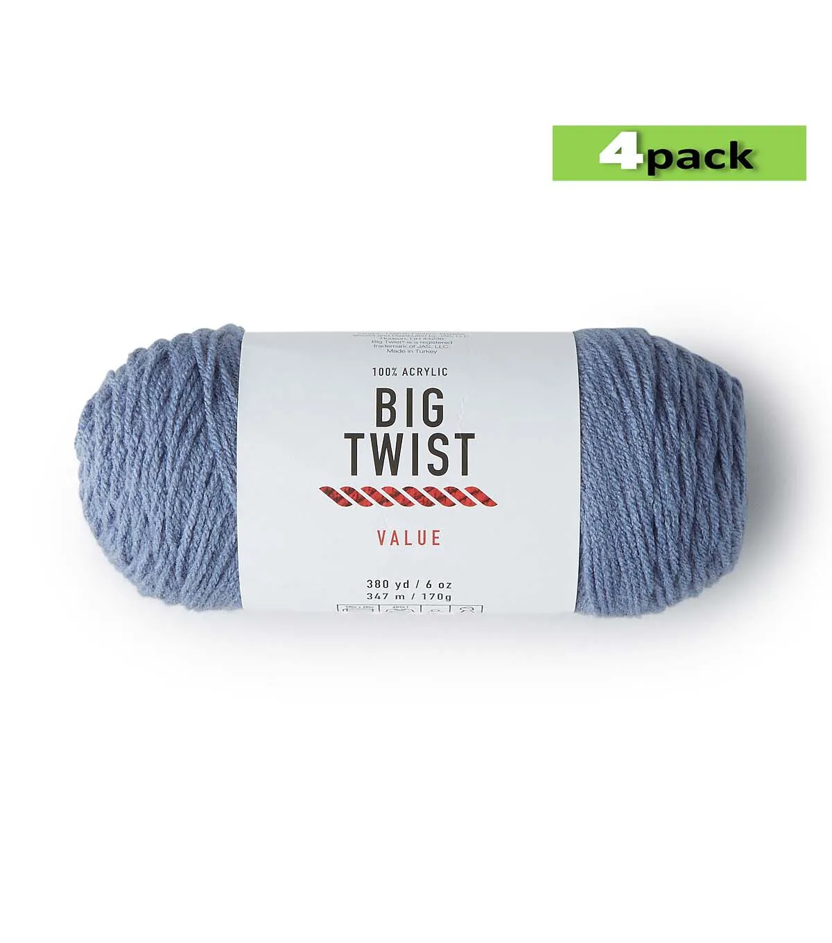 4pk Solid Denim Blue Medium Weight Acrylic 380yd Value Yarn by Big Twist