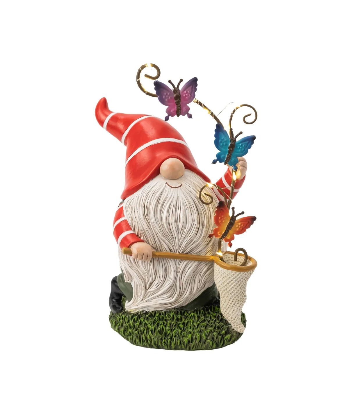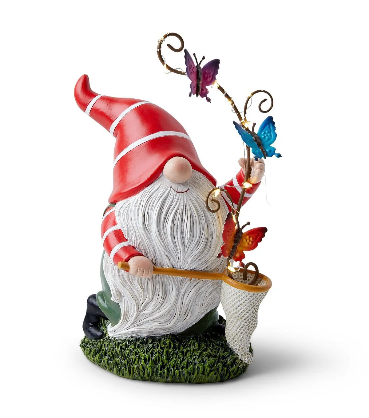 9" Spring Gnome & Butterfly Outdoor Solar Garden Statue by Place & Time