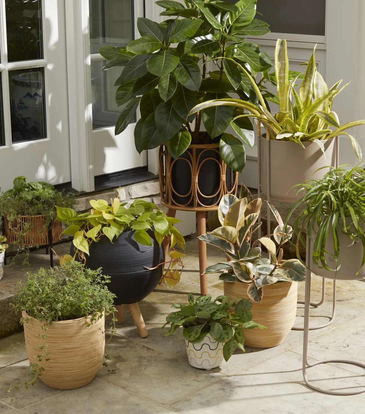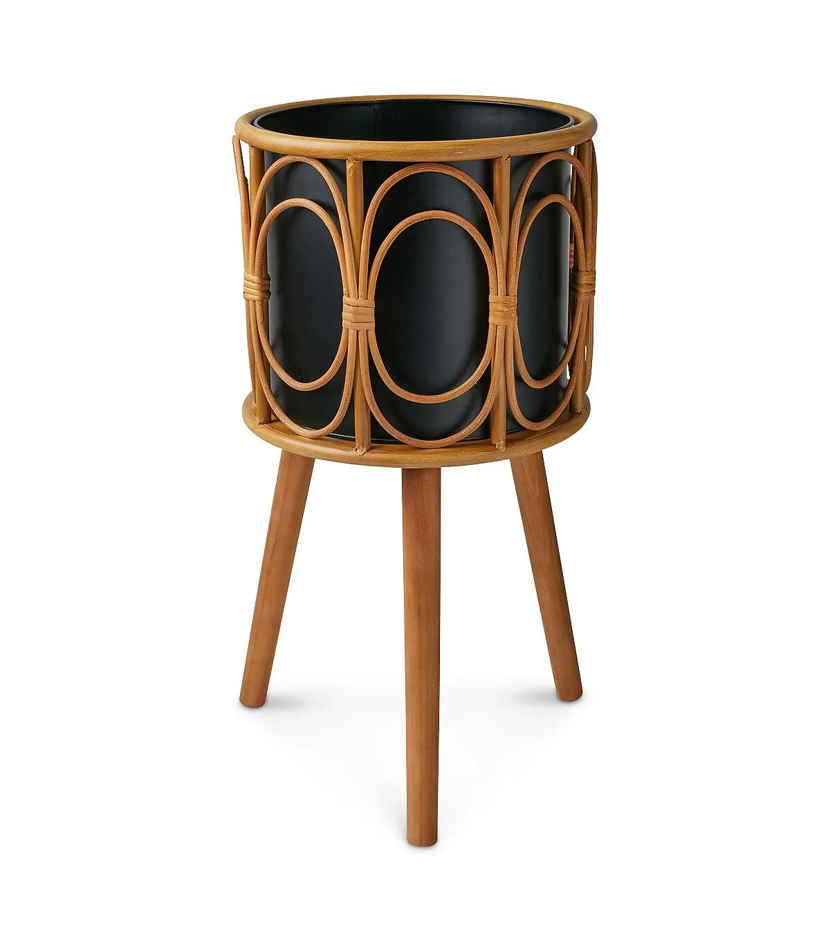 24" Spring Black Iron Planter With Rattan Accent by Place & Time
