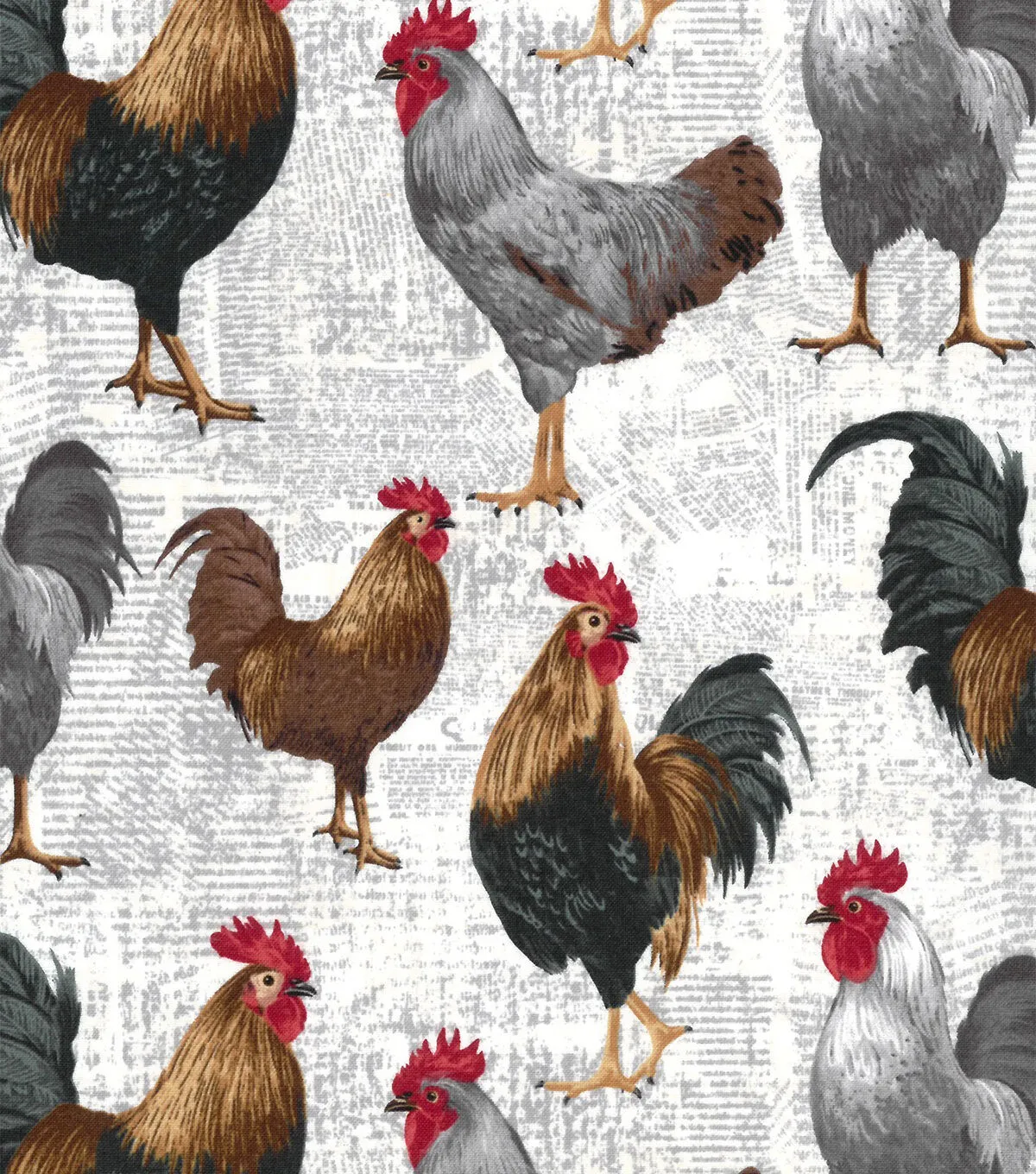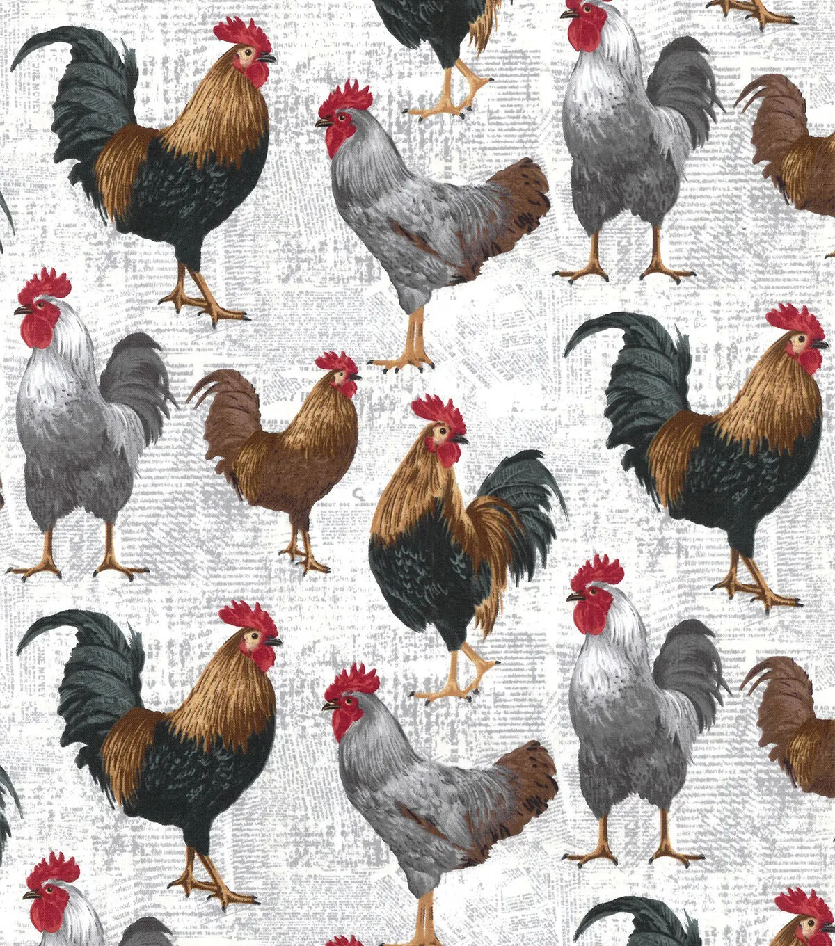 Novelty Cotton Fabric Farm Chickens on Newspaper